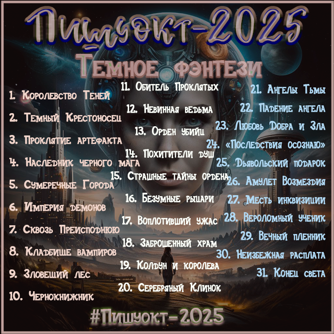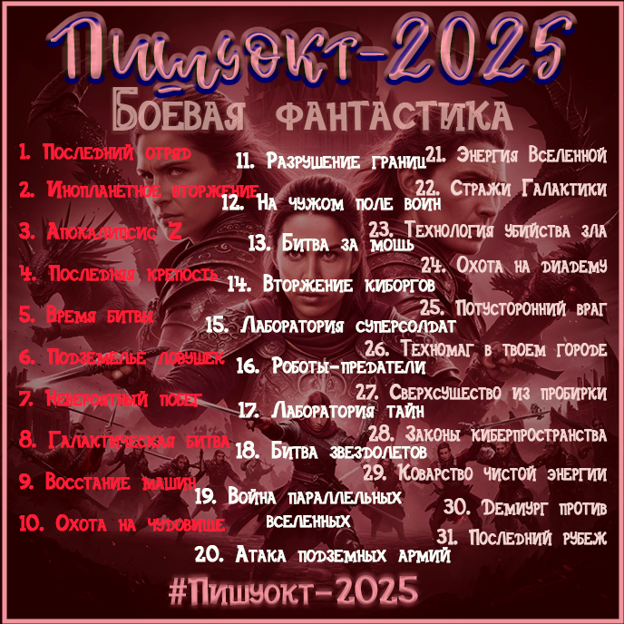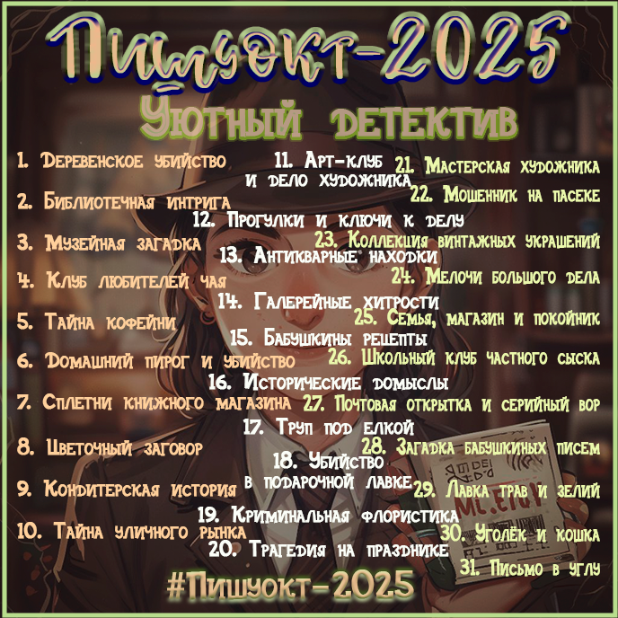 Автор: Юнта ВерескМне сказали, что если картинок много, то пост долго открывается. Так что в дополнение к основному посту о "Пишуокт-2025", новые темы буду выкладывать отдельными постами.
