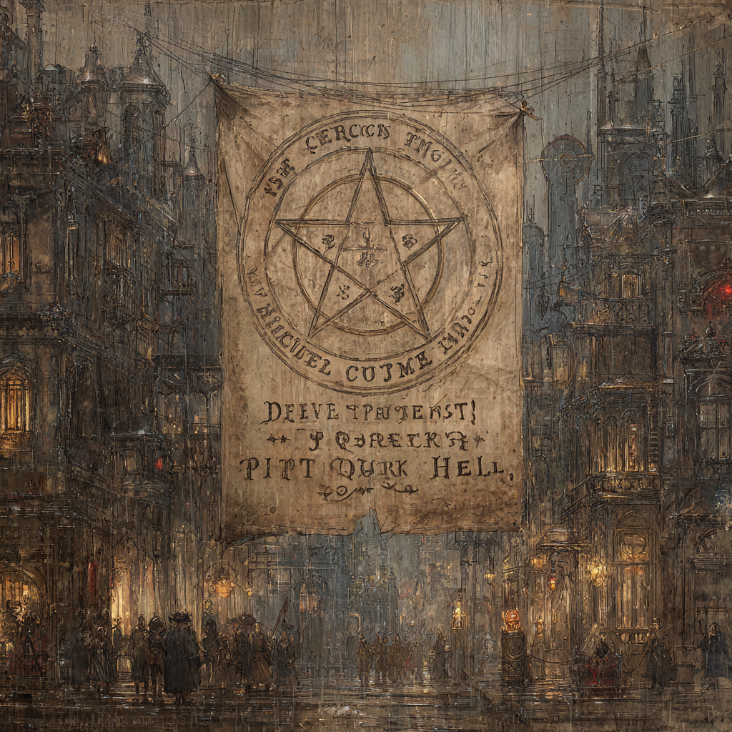 Транспарант, на котором изображена звезда, предохраняющая от адского пламени. Полный восторг!