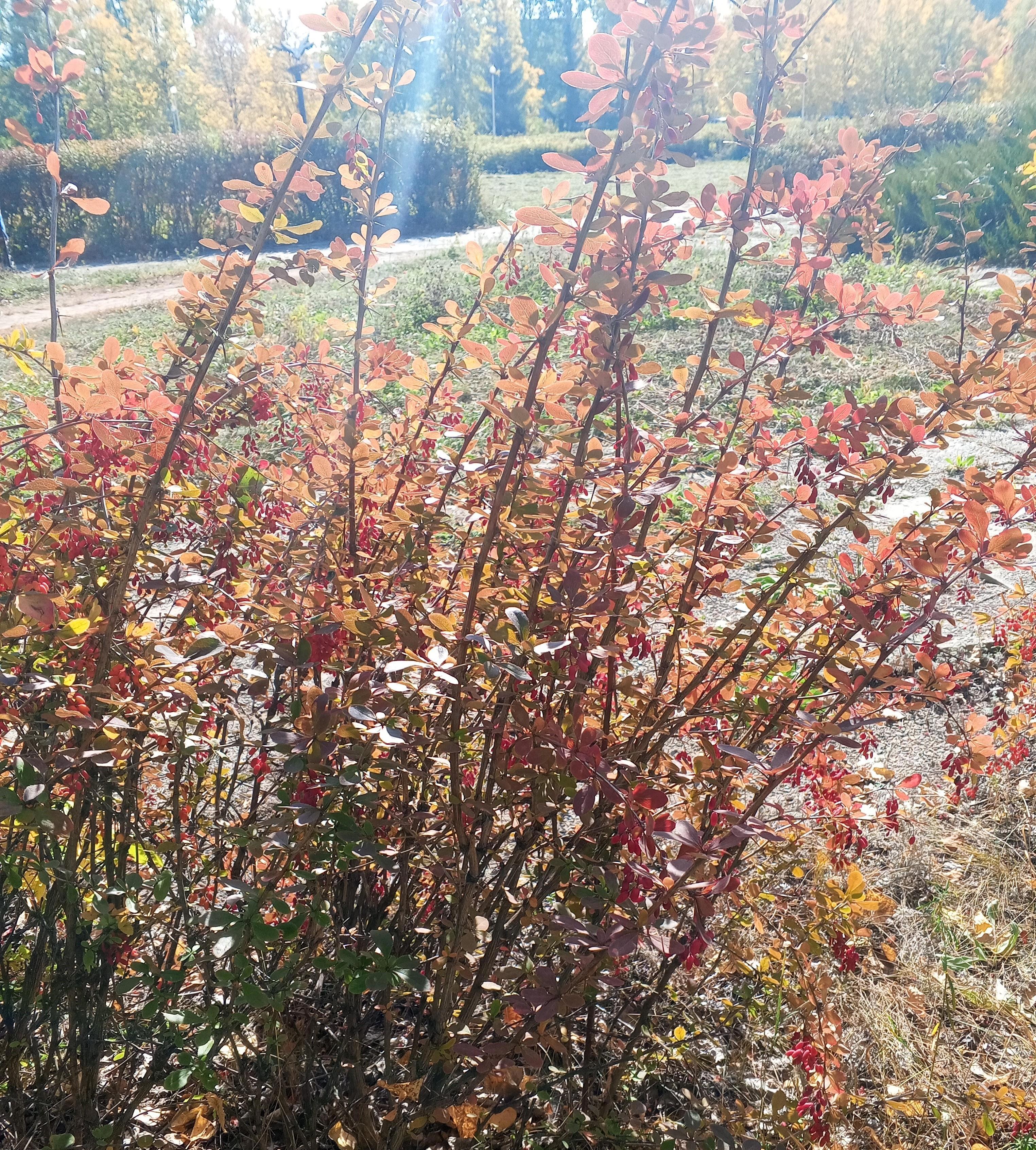 А вот это фото мило не красным кустом, который тоже хорош, а светом на заднем плане. Люблю такие фотографии, когда солнечный свет становится осязаемым и его словно можно потрогать.