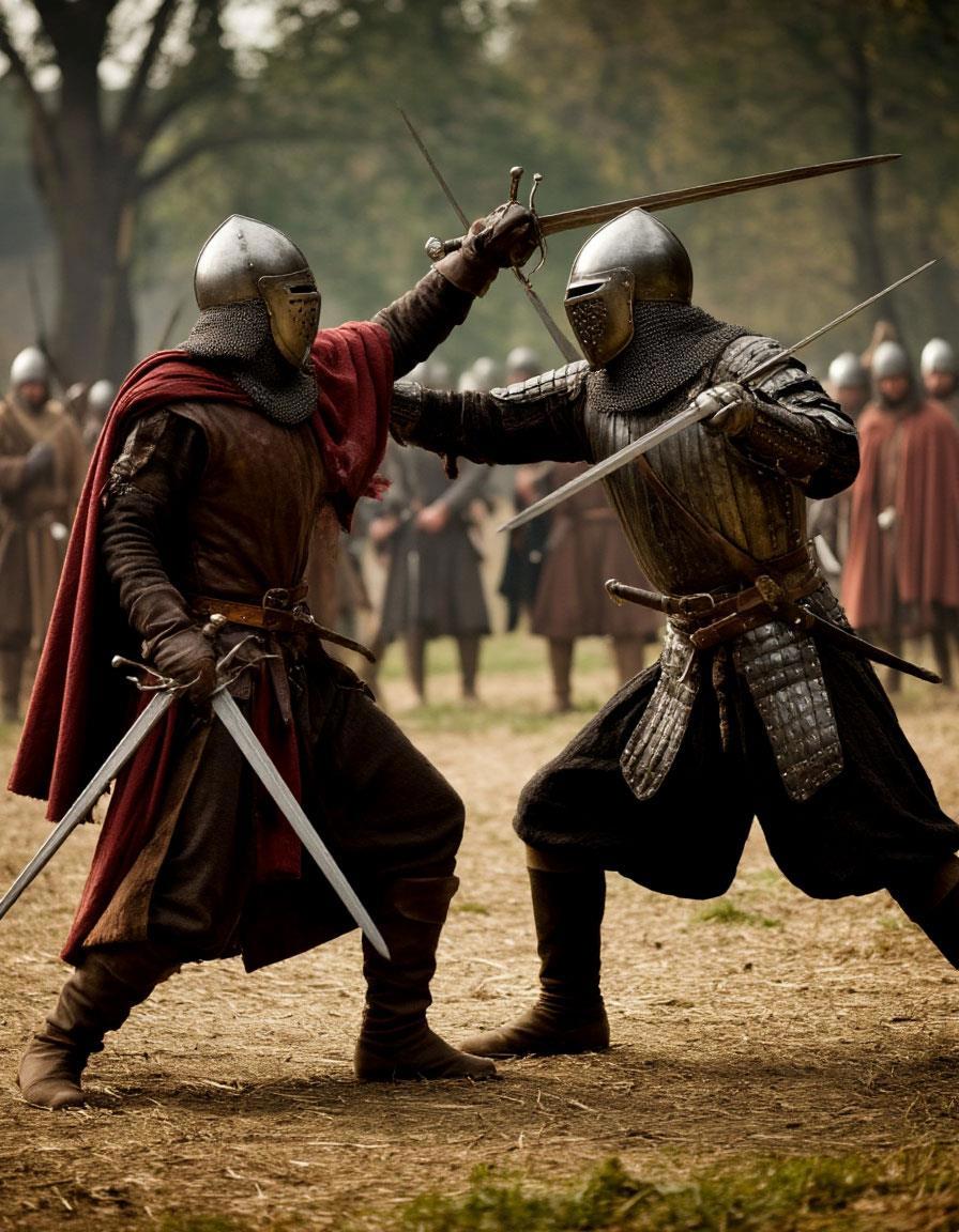 Да, поиграла я с ней (или она со мной). В прошлый раз я выложила хоть кукольных персонажей, но более-менее адекватных. А вот что она мне нарисовала на запрос "Поединок". Описание желаемого, понятное дело, было подробным, но не сработало. В итоге получилась картина под названием "Два дебила - это сила!"