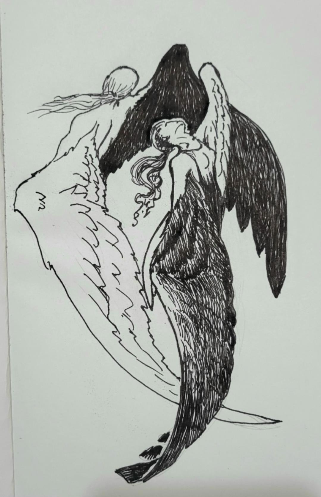 И линер новый опробовала. Хороший, но лист скетчбука в паре мест промок насквозь.