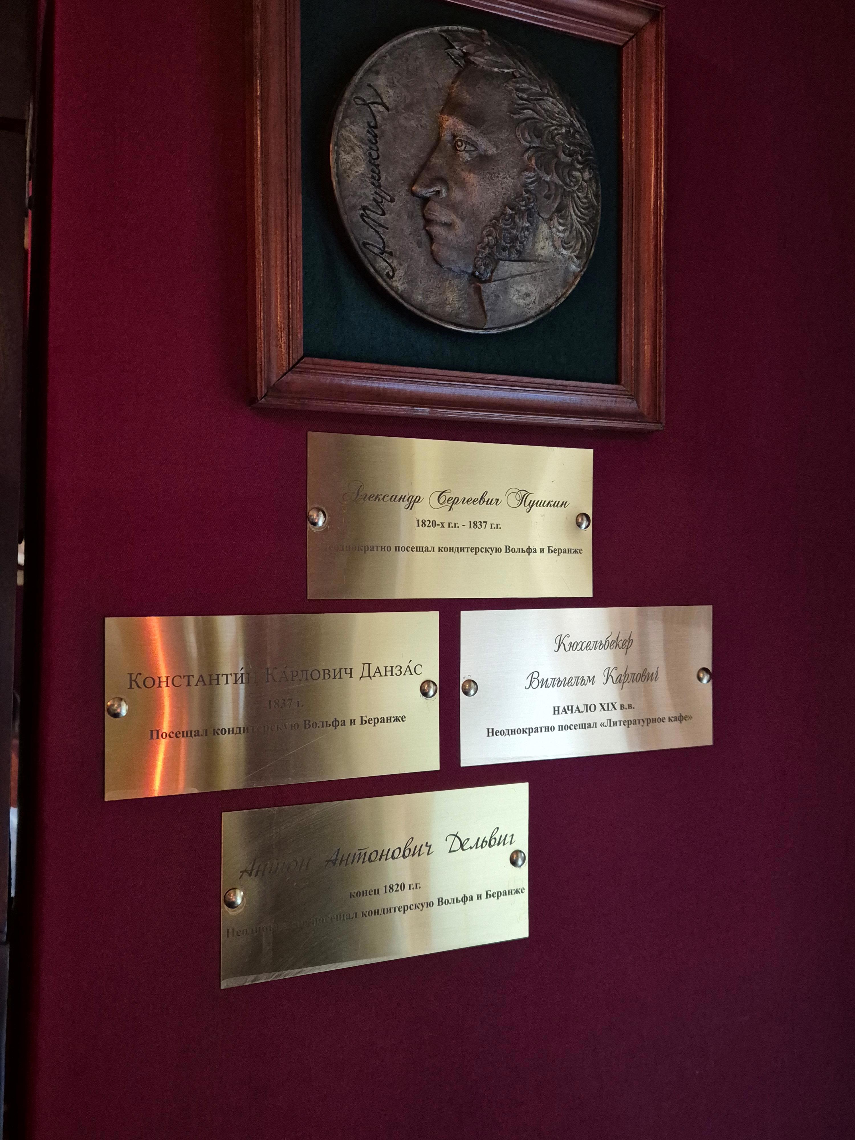 В кафе есть и восковая скульптура Пушкина, это таблички у моего столика.