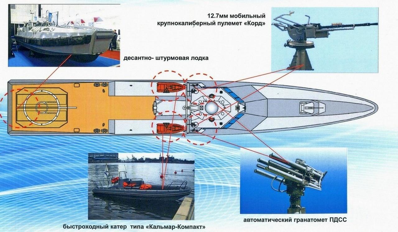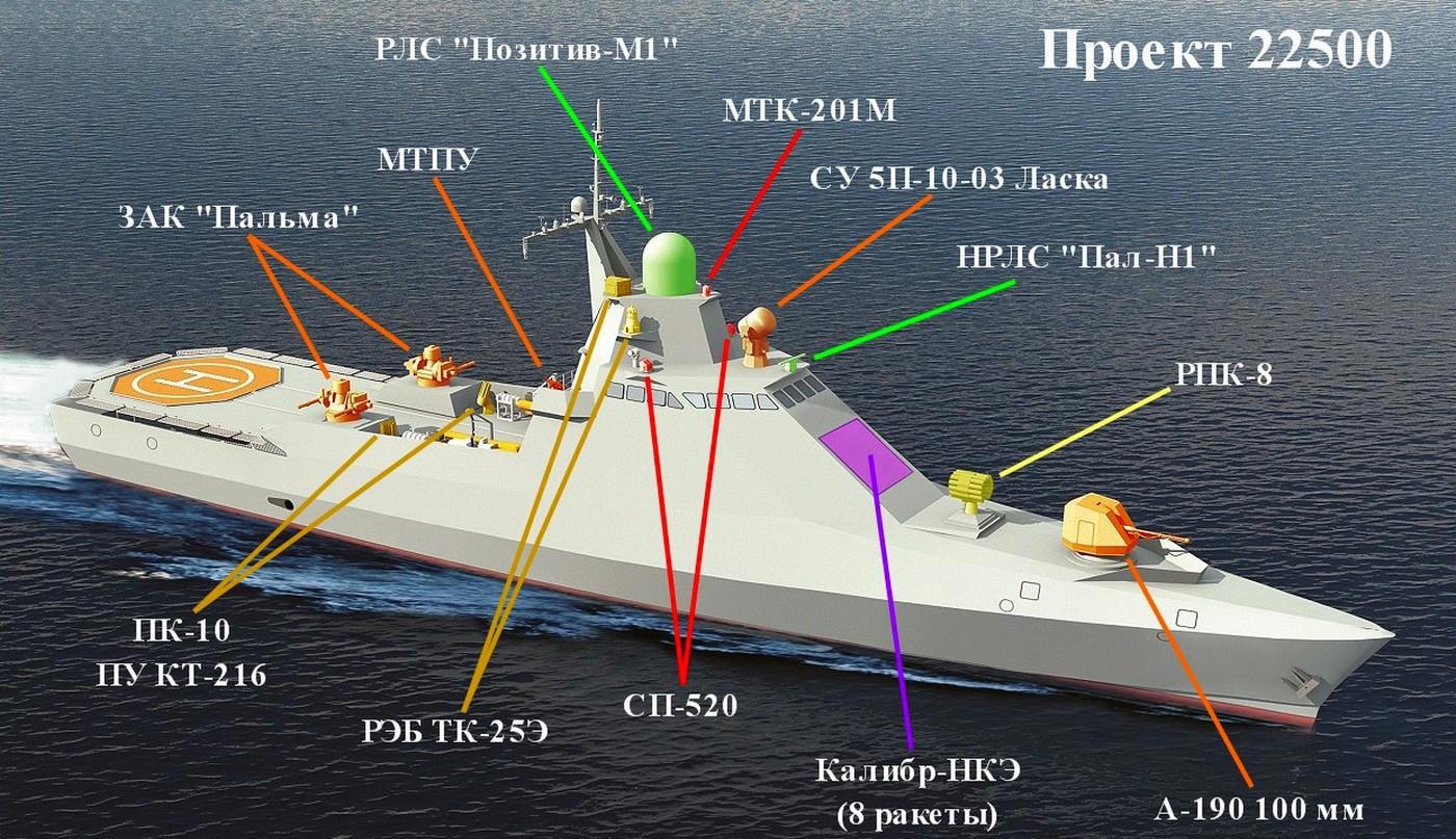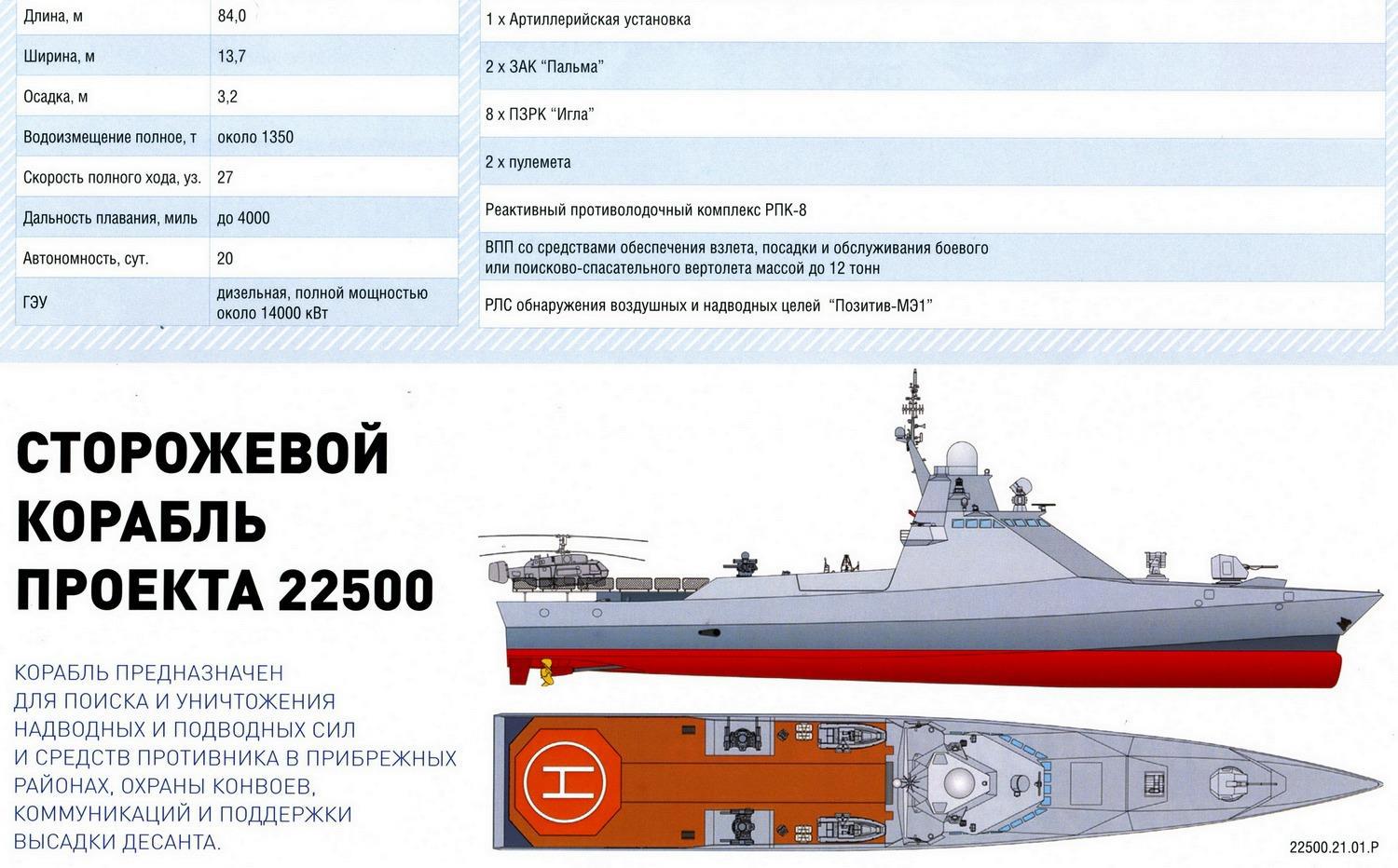 Покрупнее – это сторожевик пр. 22500. Вот его рекламная листовка с основными характеристиками: