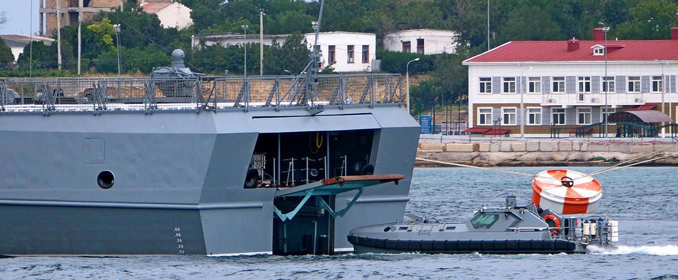 А вот здесь погрузка на корабль десантно-штурмового катера: