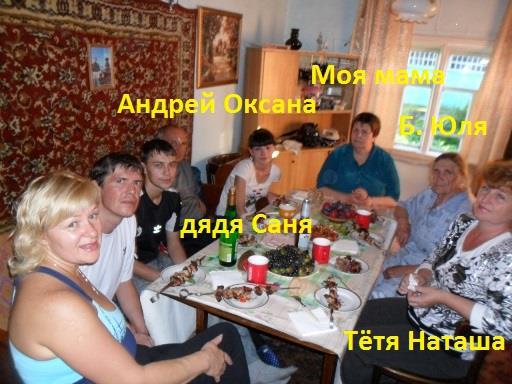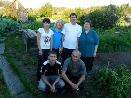 Рис. 21. Дядя Саня и двое его детей. Также: мы с Ириной и моей мамой. 2010 год, Западная Сибирь – огород бабы Юли (На заднем фоне – известная баня).