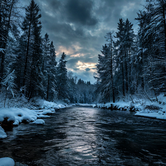 От глянцевой чёрной глади шёл жемчужный пар, а на противоположном берегу из реки выходили человеческие следы, которые терялись у вывернутых корней деревьев.