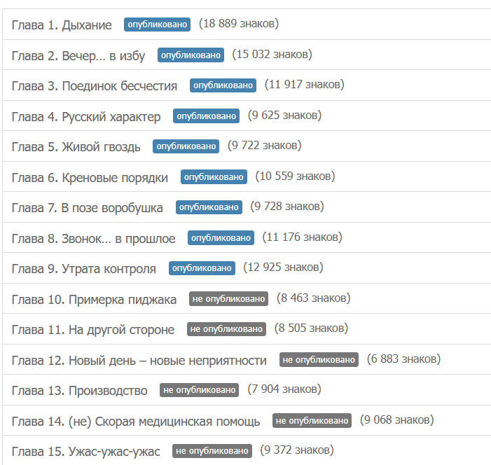 Автор: Григорий ГрошевМоя самая успешная книга написана в режиме марафона. Вернее, первую часть (около 150 килознаков) я писал неспешно. Публиковал так же. Потом я заметил, что прочтений довольно много - и объявил марафон проды. Каждый день писал минимум 15 килознаков и тут же публиковал.