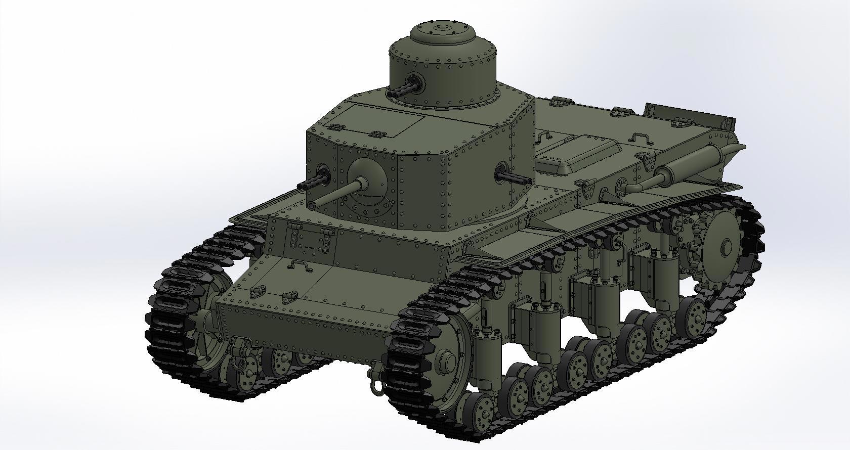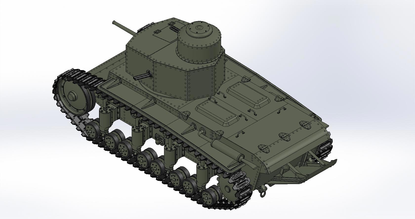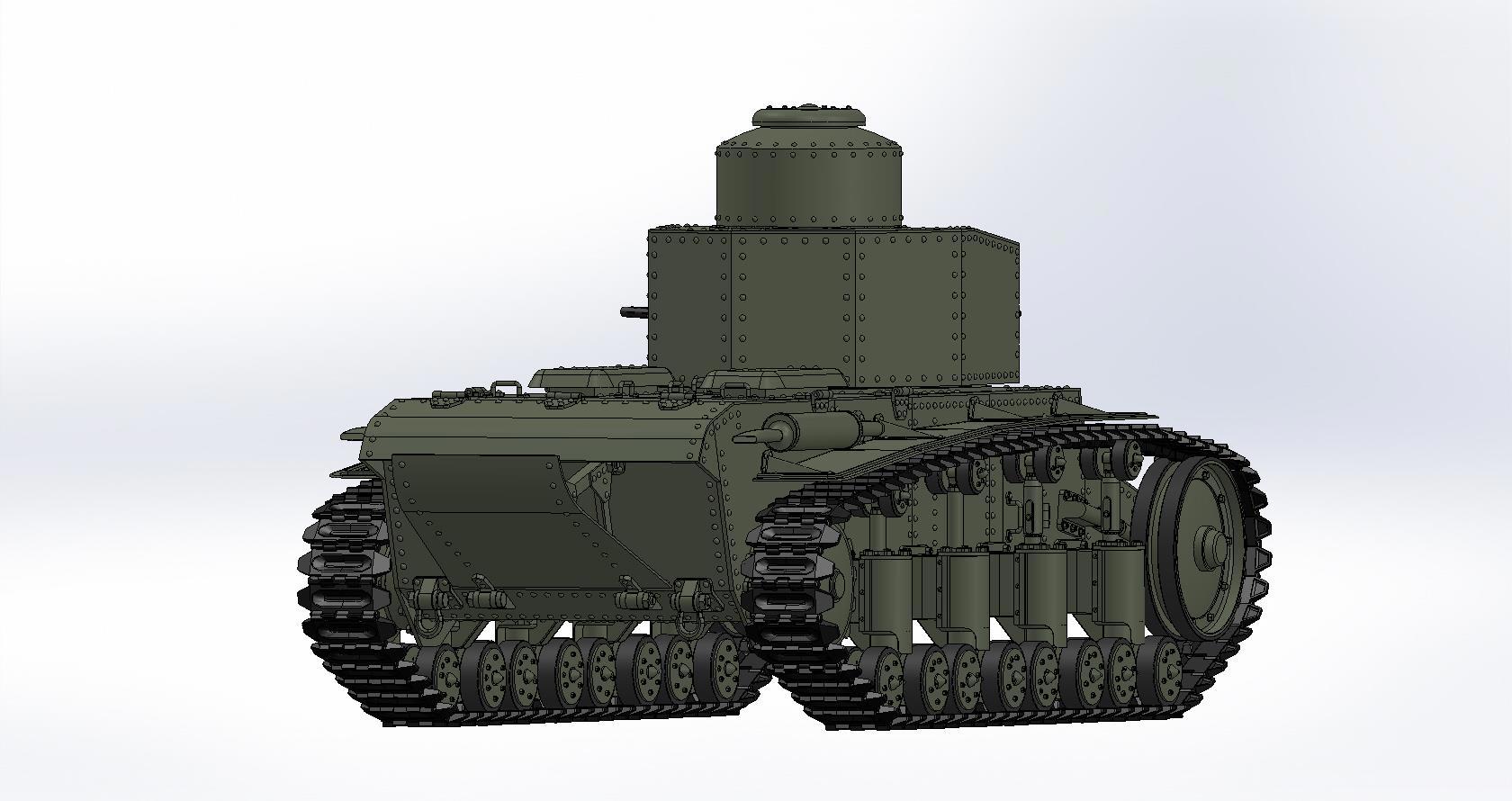 Но построенный Т-12 отличался от того что сначала спроектировали. В начале у него пулеметы Федорова с двумя стволами должны были быть и корпус немного отличался. Ну а я люблю иногда 3Д побпловаться и посмотреть на что-нибудь непостроенное. И вуаля !