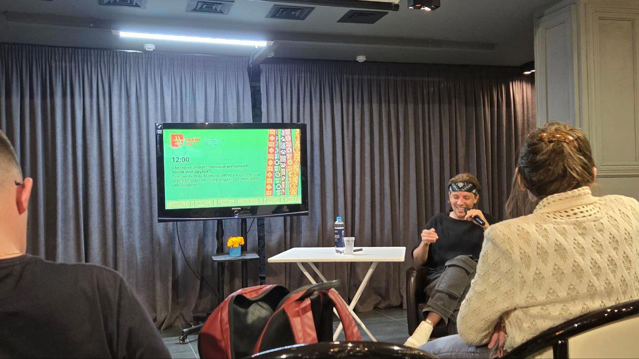 Побывал на выступлении самого содержательного (на мой скромный взгляд) спикера выставки Антона Мамона, автора издательства «РИПОЛ классик», шеф-редактора импринта «Молодость» по теме: «Автор vs. Искусственный интеллект: враги или друзья?»