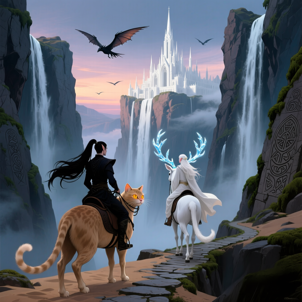 Автор: Котэ-ДетективКотэ не потерялся, опять. Просто пошел учиться рулить машинковой и в голове сплошные дорожные знаки, по этому совсем не бодро пишется. Но в качестве небольшой извиняшки, вот сгенерировала ИИ шечкой немного комиксов к Зову Странствий и иллюстрацию к следующей главе.