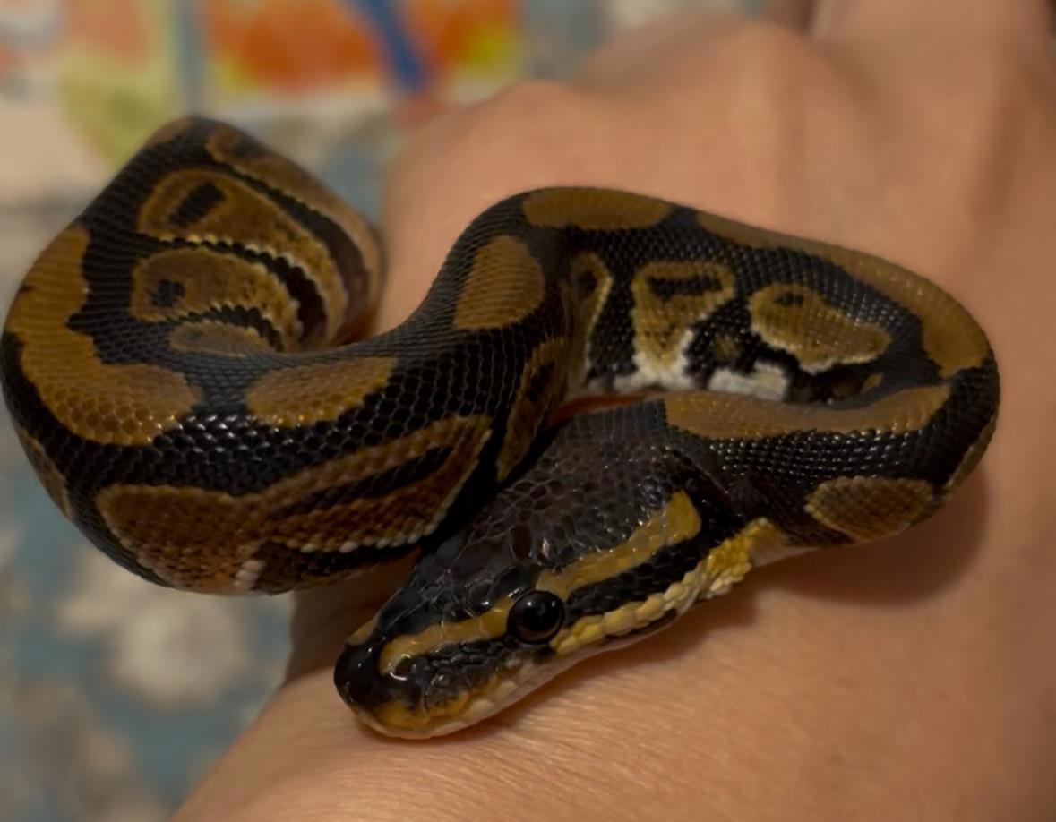 Малышу королевского питона на фото 1,5 месяца.