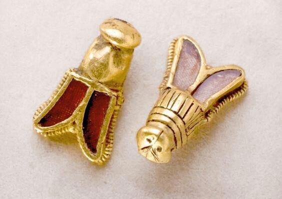 Насекомые были двух видов — с большим количеством деталей и упрощенные. Считается, что первые украшали плащ короля, а вторые — сбрую его коня.