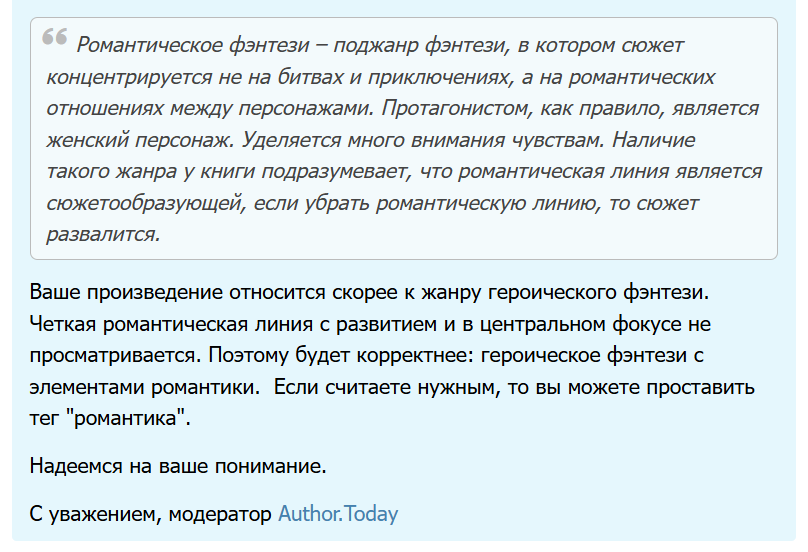 2. В рамках «рассортировки» моих книжек вокруг маркировки 18+, мне было велено снять жанр «Романтическое фэнтези» с цикла «Наследие Греймхау», потому что «романтическая линия в центральном фокусе не просматривается». Я восприняла это как комплимент, поскольку некоторые мальчики-нытики пытаются мне сразу под первой книгой сказать что-то в духе «ой ну всё яснапанятна, вот ща этот Эмрис станет крутой и чпокнет герцогиню, и только это девочкам и интересно». А вот нет, а вот даже АТ считает, что сюжет вообще в другом.