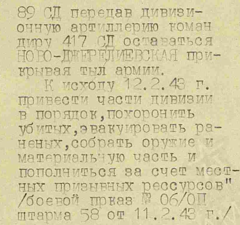 По крайней мере, судя по следующим приказам в 89-й сд, какое-то просветление в головах у оставшихся в живых наступило.