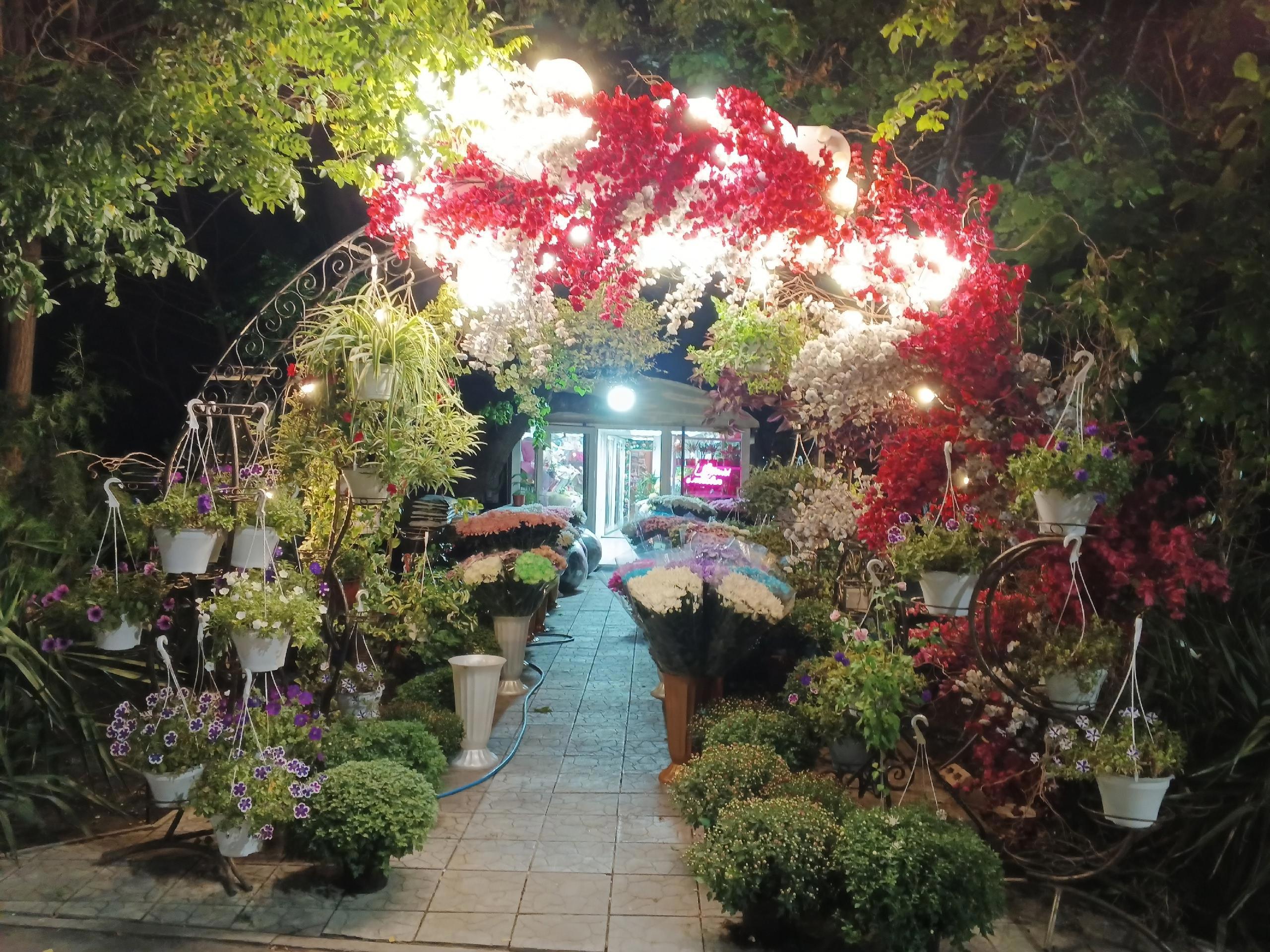 Рядом подмигивает яркой цветочной аркой круглосуточный магазин цветов.