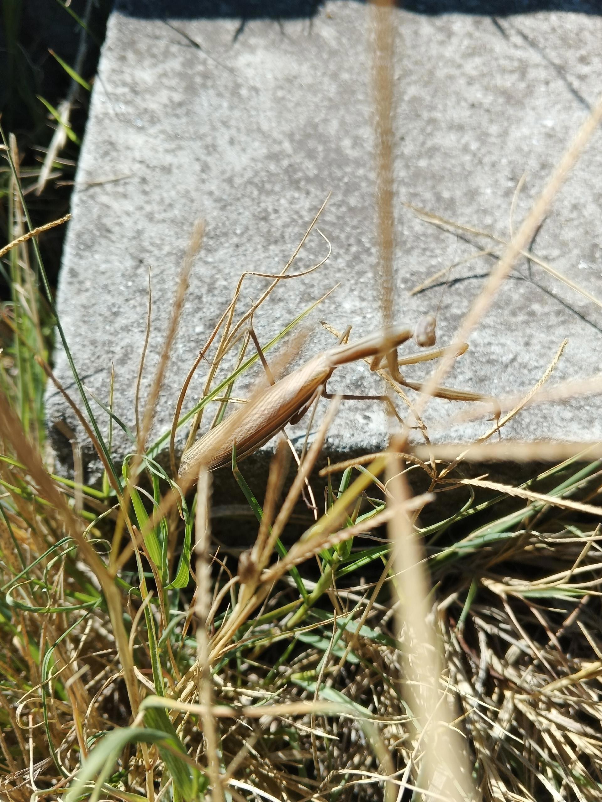 Сегодня богомол не зелёный, а рыжеватый. Фото Галины Малышевой.