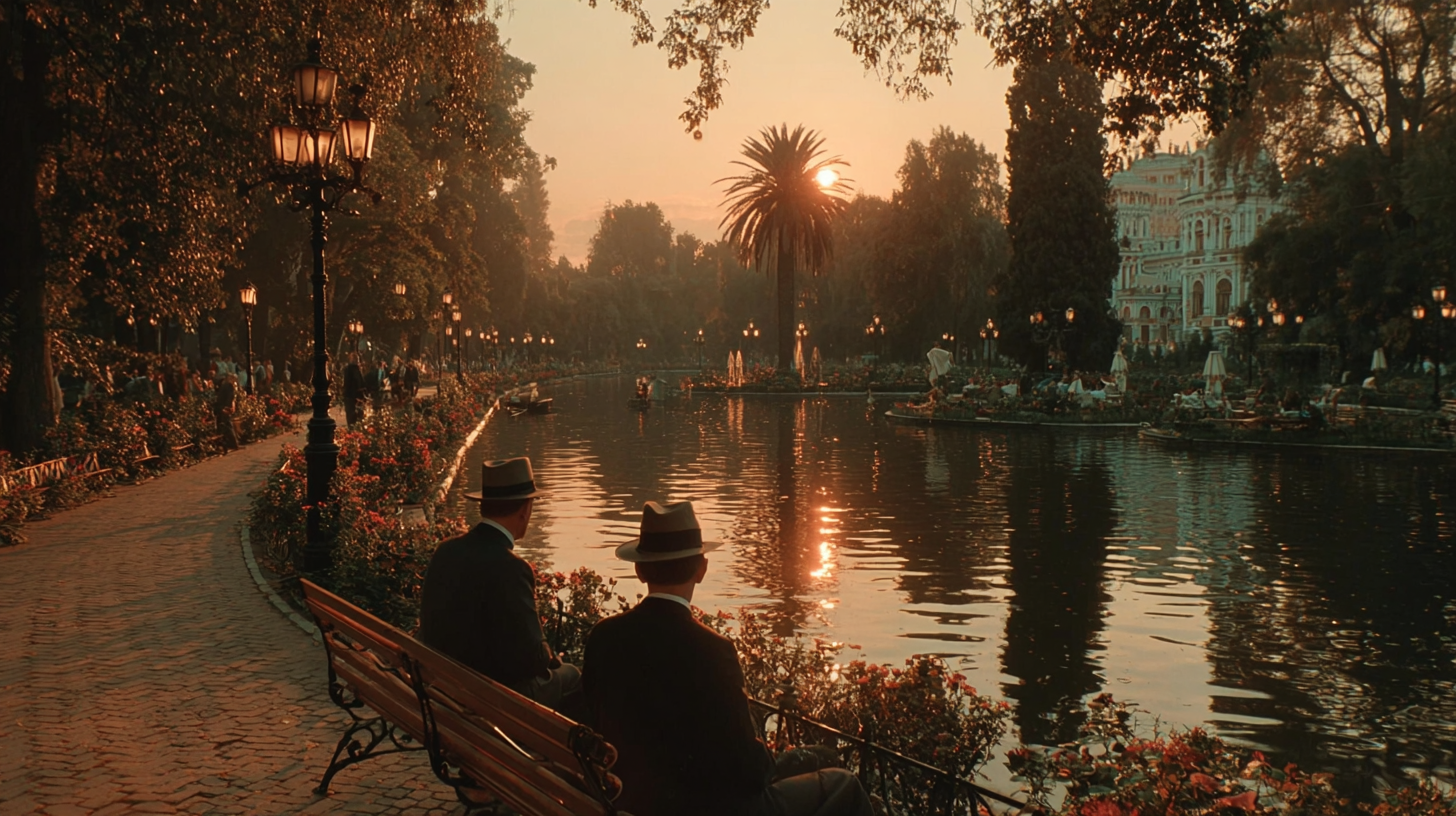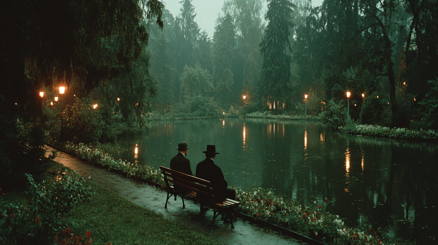 Патриаршие. Сумерки ещё мягкие, но воздух уже знает: сейчас произойдёт фокус. Двое спорят о том, чего «не бывает», и вдруг рядом оказывается третий — с глазами, в которых плывут чужие города. Сцена держится на мелочах: жар, скамейка, тень от шляпы, блеск на пуговице. Булгаков запускает логику романа не громом, а неуверенностью света: то ли мираж, то ли отражение; и мы уже внутри.