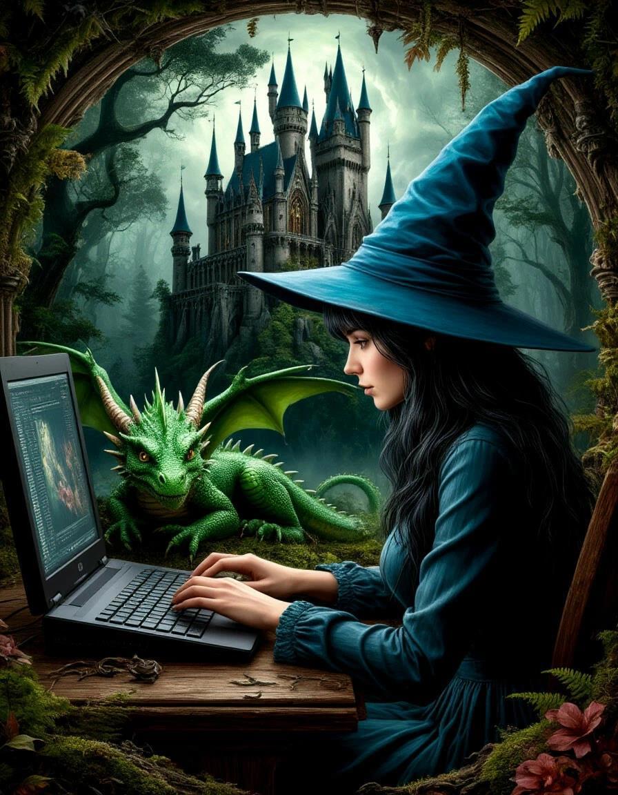 Дракон ходил кругами вокруг Сказочницы. Она сидела за компьютером и так сосредоточенно что-то искала, что не замечала, как он толкает ее своей теплой чешуйчатой мордой.