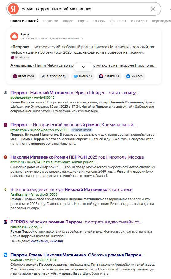 Если набрать в поисковике мою фамилию и название романа то вот так выглядит последовательность поисковой выдачи.