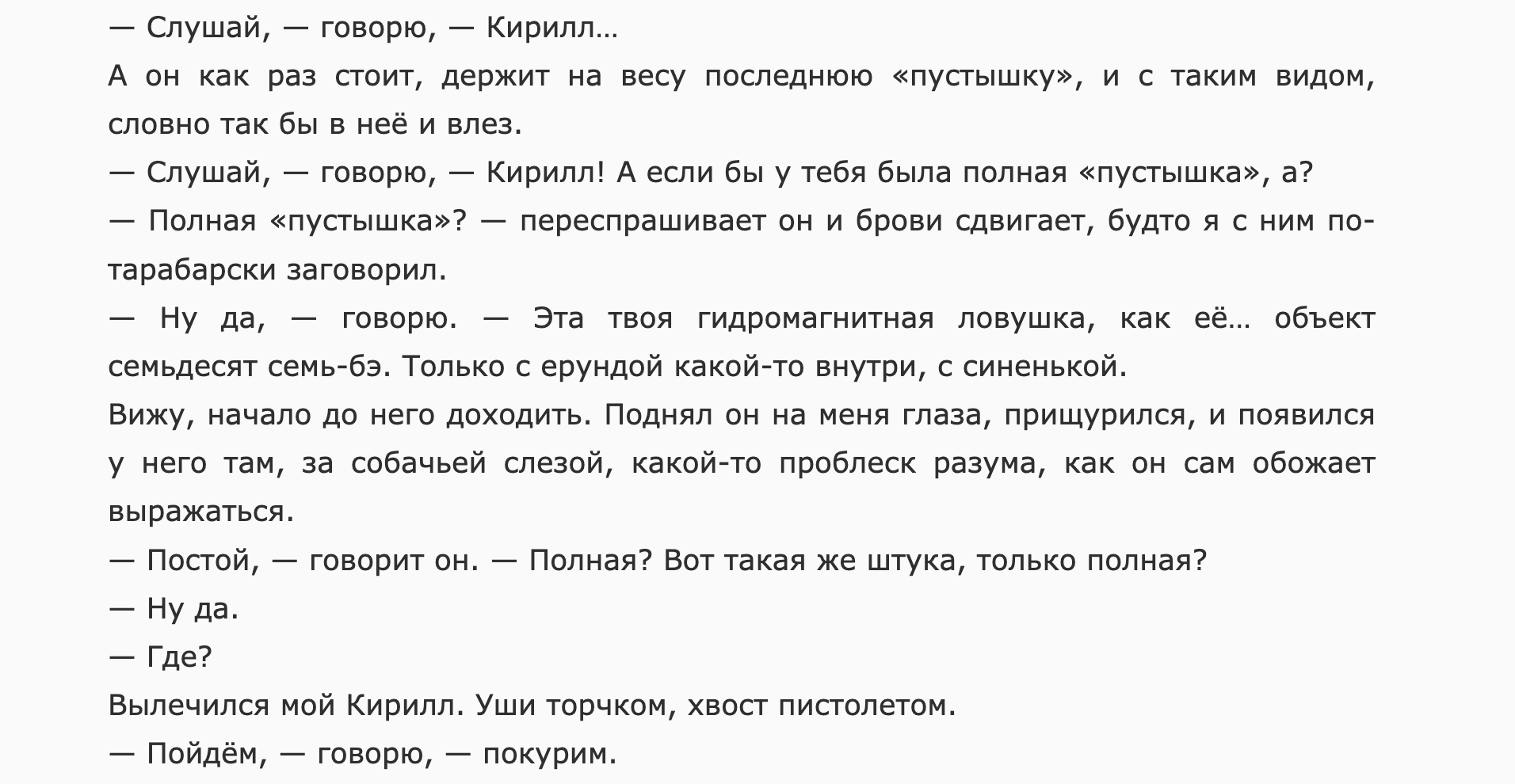 И внезапно оказывается, что повторение «сказал», «говорил» создаёт определённый стиль, образ героя, а вовсе не служит признаком неумелого МТА.