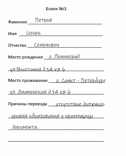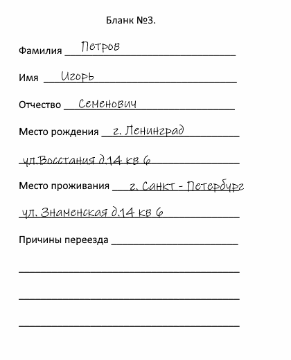 - У вас графа: “Причины переезда” не заполнена. Без ее заполнения бланк не приму.