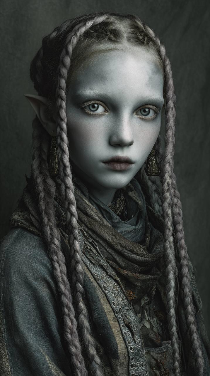Автор: Эва Ясакова"Девочка, а вернее — очень молоденькая девушка, на вид немногим старше Эрики, смотрела на нас внимательно и требовательно. Ее тонкое, без намека на девичьи округлости тело, напряглось, как если бы она готова была убежать в каждую секунду. Довольно высокая и угловатая, она напоминала веточку, обуглившуюся в костре, впечатление дополнял цвет ее кожи — голубовато-серый, пепельный, даже матовый, у меня в голове мелькнула мысль, что она, скорее всего, прекрасно охотится ночью, полностью сливаясь с окружающим миром. Глаза, огромные, как у Лайена, совершенно нечеловеческого цвета, были широко распахнуты, а свои густые, жемчужно-розовые волосы, она, собрав на затылке, заплела в косы, которыми подвязала уши, прижав их плотно к голове."