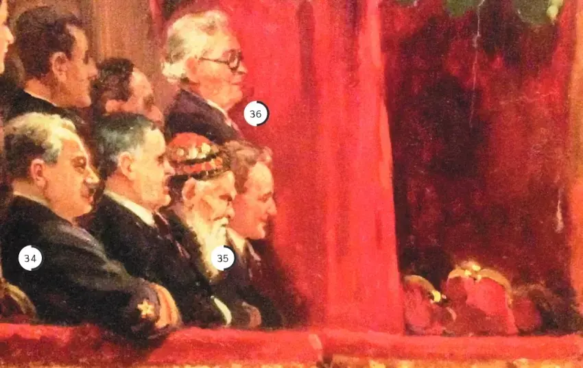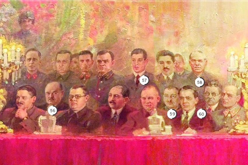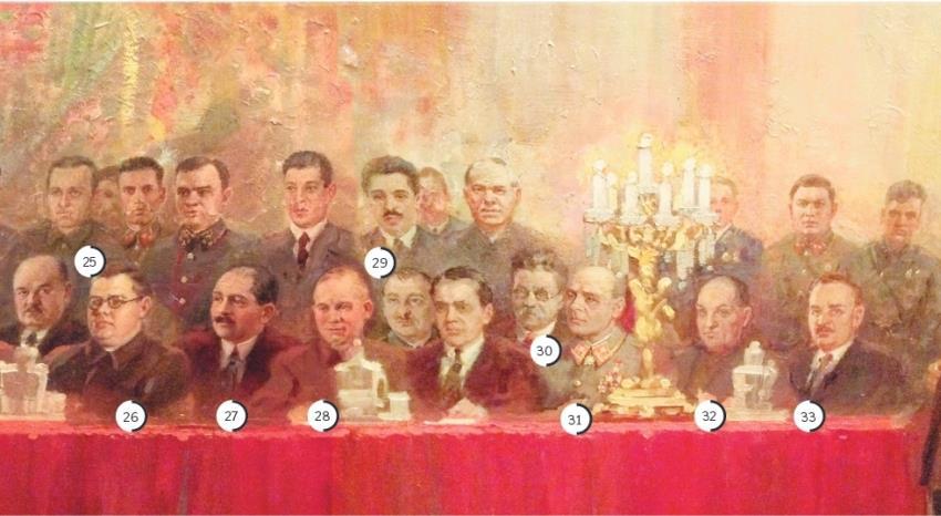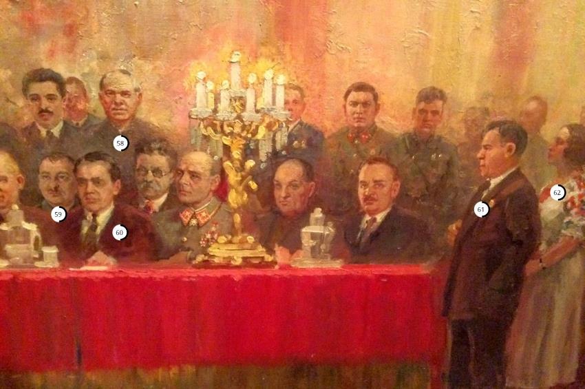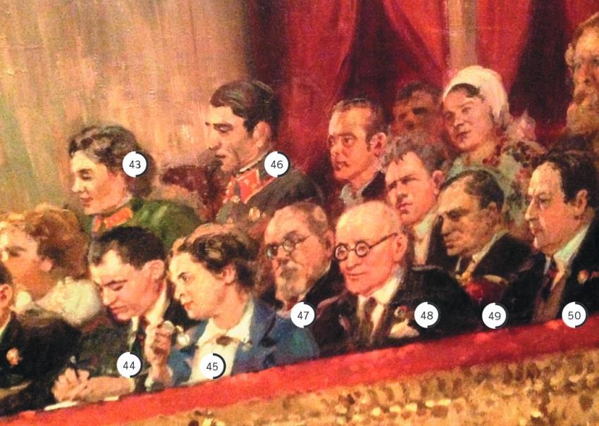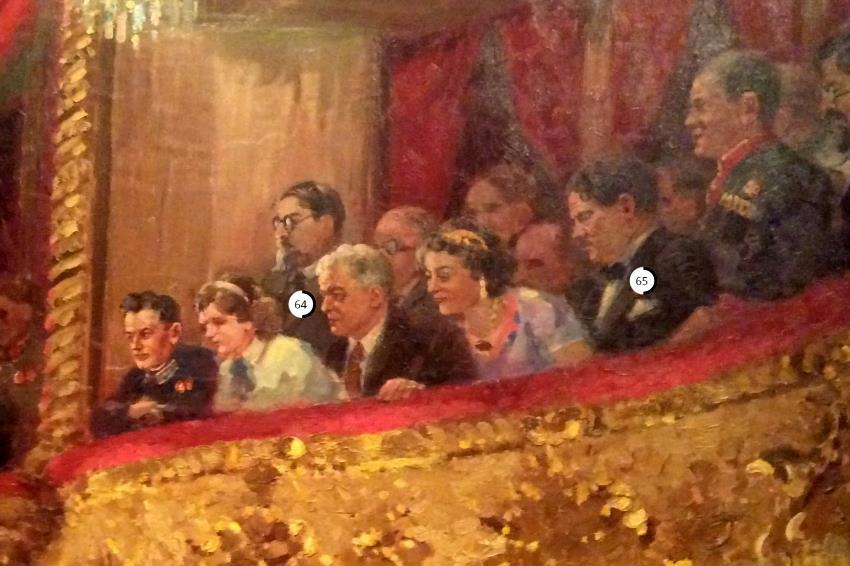 Итак, некоторые персонажи картины "Гимн Октябрю. Торжественное заседание трудящихся Москвы по случаю 25-й годовщины Октябрьской революции 6 ноября 1942 года".