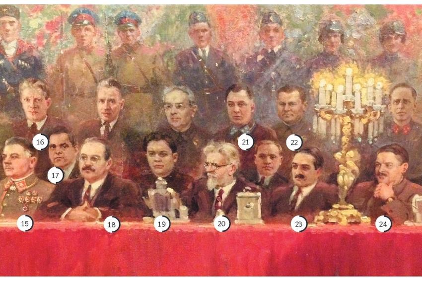 19. Николай Алексеевич Вознесенский (1903-1950). С 10 марта 1941 года 1-й заместитель председателя Совнаркома СССР. Член Государственного комитета обороны и член комитета при СНК СССР по восстановлению хозяйства в районах, освобожденных от немецко-фашистских оккупантов. Репрессирован.