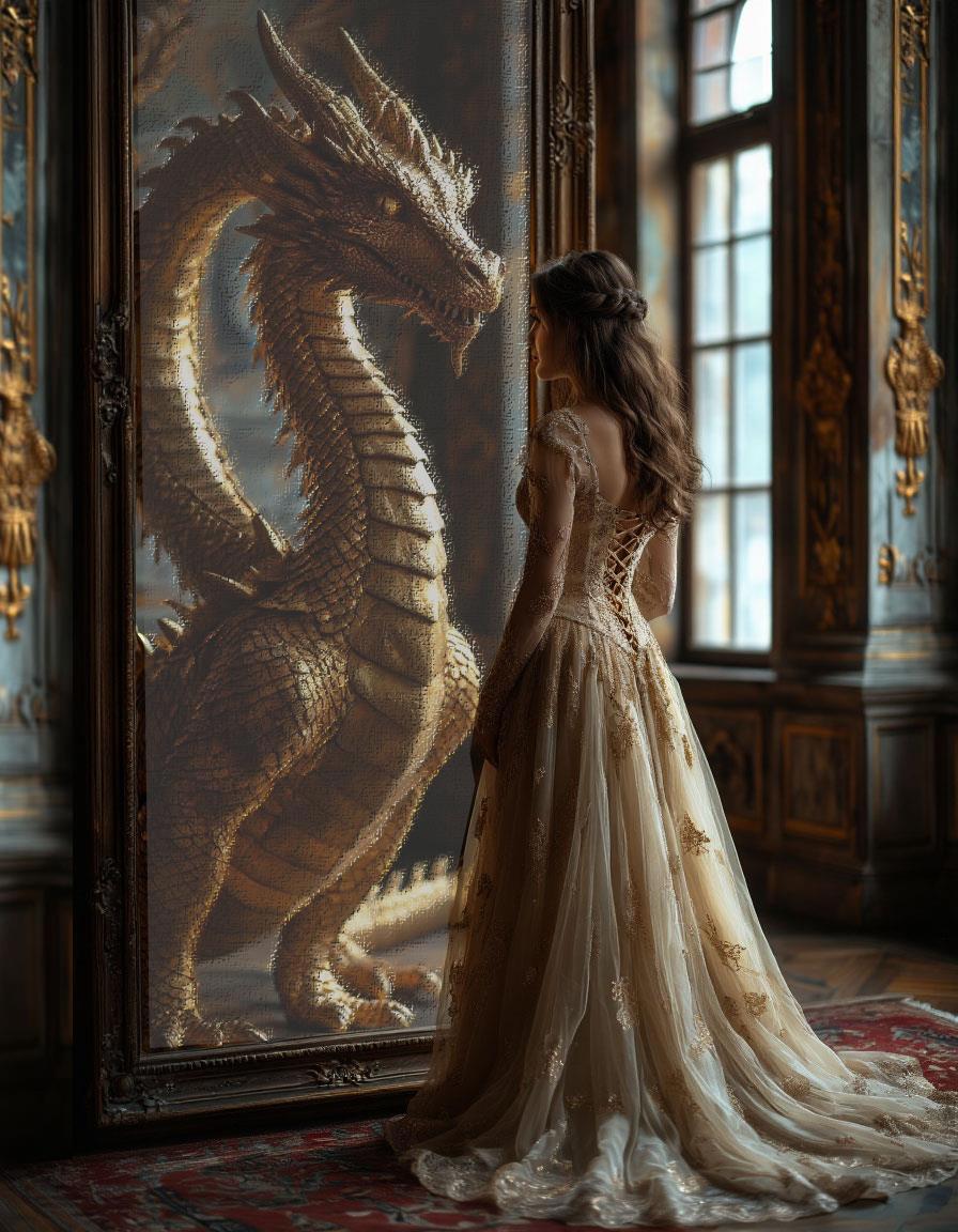 Я рискнула снова взглянуть в зеркало. Отражение начало расплываться, терять чёткие формы. Золотая чешуя как бы таяла, уступая место коже. Крылья втягивались, хвост укорачивался. Через несколько секунд в зеркале, дрожащая и бледная, стояла я сама — в своём потрёпанном, но человеческом обличье, с безумно бьющимся сердцем.