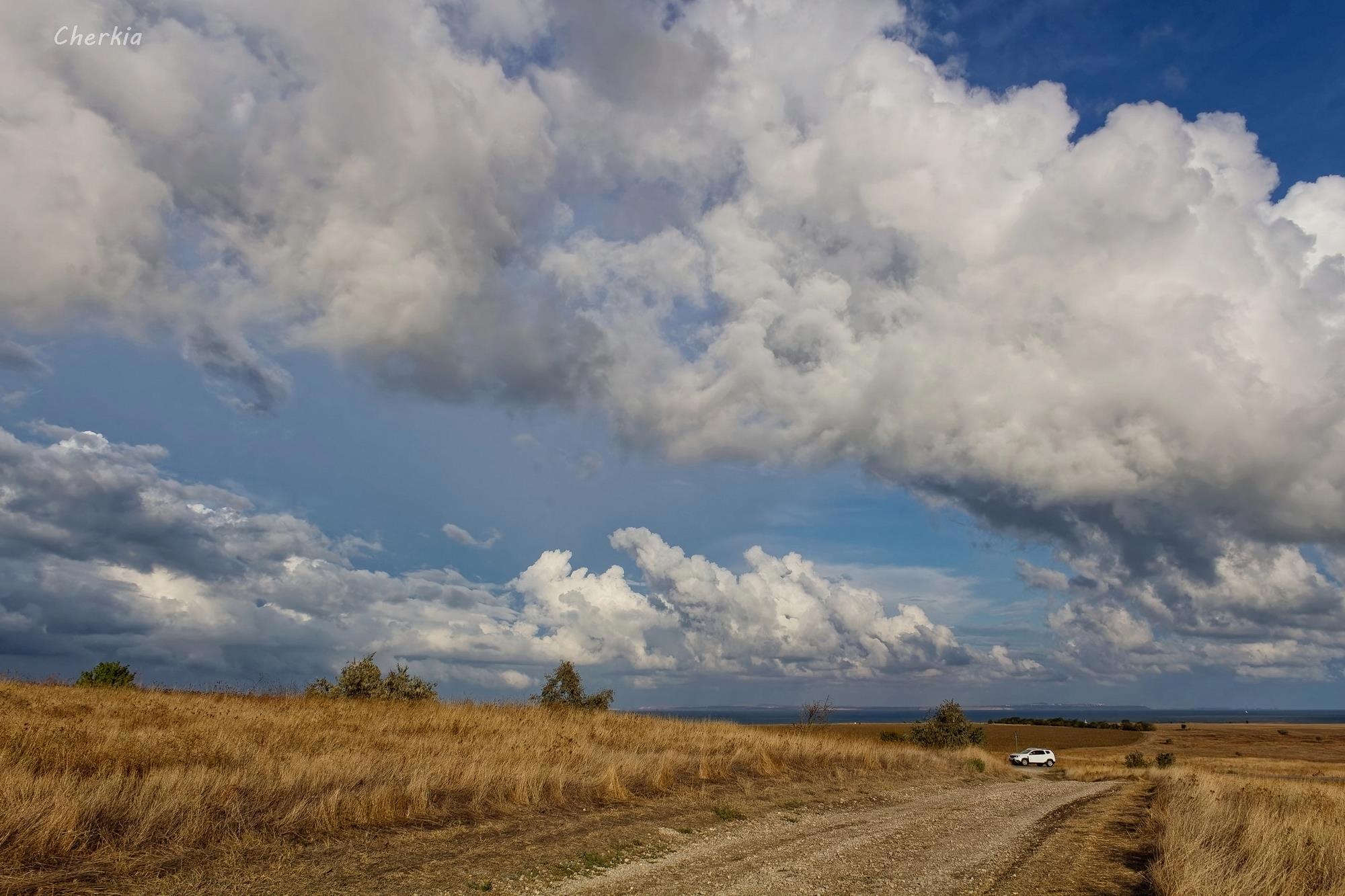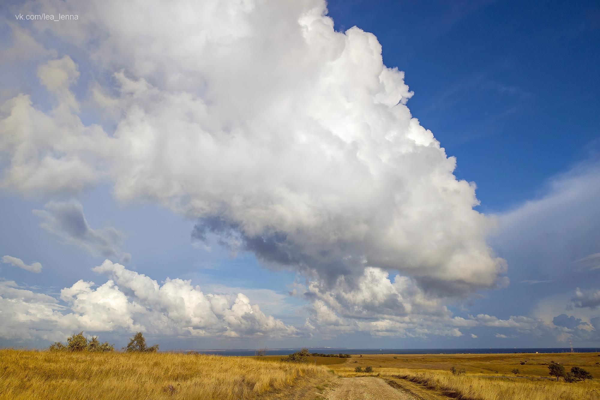 Желтые травы уходили в тень, а потом загорались так ярко и прекрасно, что невозможно было не смотреть. Но как не смотреть на такие облачищи - белые над золотом трав...