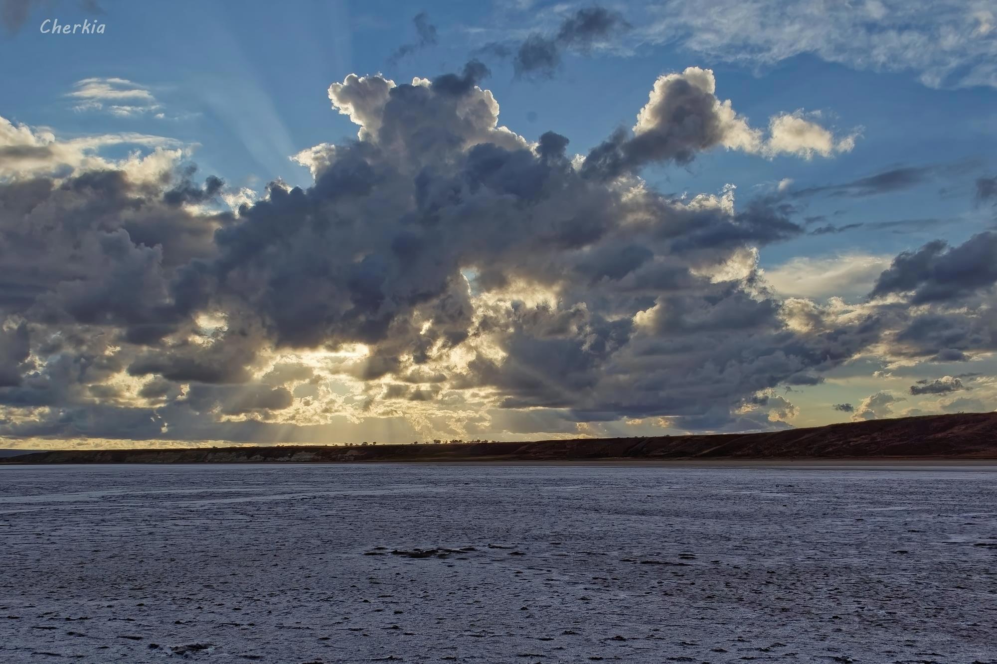 Соленое озеро Тобечик само по себе прекрасно, но в дни облачных действ там просто великолепно. В такой вот день мы туда и попали, совсем для себя неожиданно - поехали просто посмотреть закат над солью.