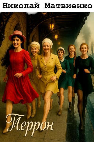 Еврейские девушки бегут по каменному перрону. Шесть еврейских девиц смеются и бегут по перрону. Первая девица бежит широким шагом высокая ростом в красном светлом платье в розовой шляпке на голове с чёрной косой. Вторая тощая девица низкого роста, бежит лицо смеющееся в белой шляпке с белыми волосами с густой чёлкой в жёлтом платье. Третья девушка сухая и тощая еврейка студентка двадцати лет с рыжими волосами, одета в белого цвета платье тюрбан и рубашка белого цвета. Четвёртая девица очень худая школьница в мини юбочке. Пятая девушка с длинной косой и в голубом платье. Шестая девица стриженная с рыжей копной и в чёрном платье. Правая кромка перрона с плитами чёрным из полированного гранита. Вдали справа виднеются два паровоза с дымом и ажурные кованные решетки украшают навес перрона. Горят четыре фонаря под навесом с ажурными решётками...
