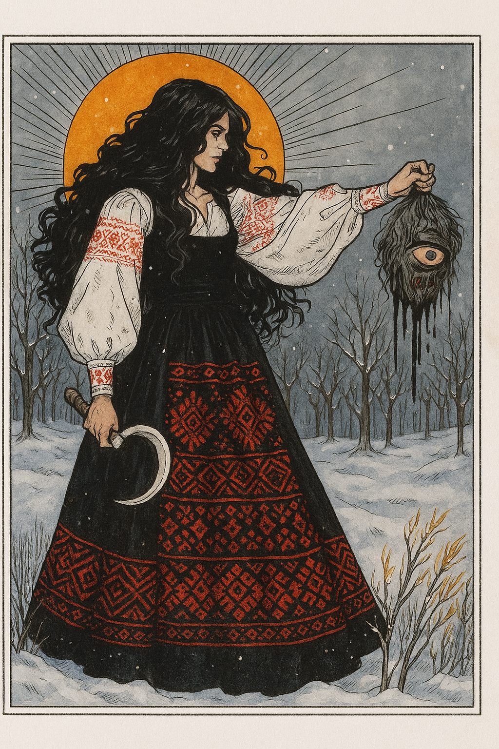 Она выхватила свой медный серп. Холодным движением схватила Лихо за редкие, спутанные волосы и резко оттянула голову назад.