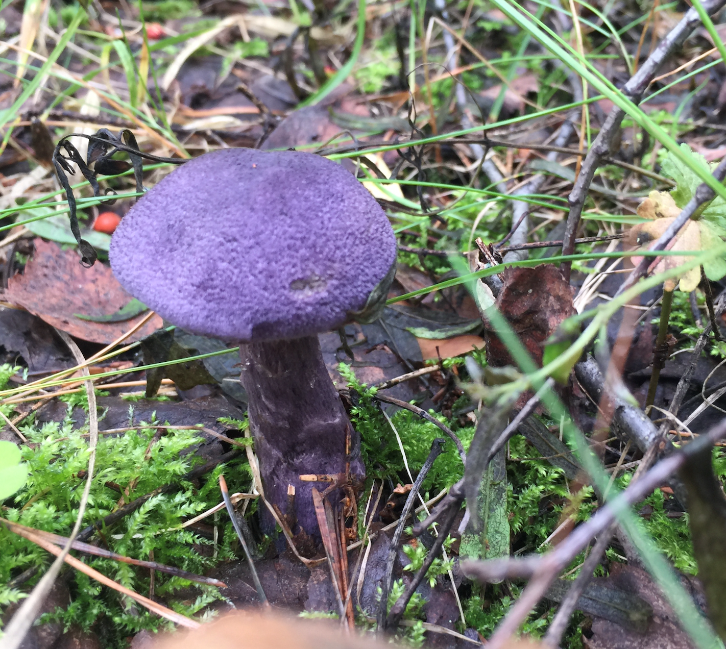 Паутинник фиолетовый- гриб из Красной Книги, но не общероссийской. Съедобный, но собирать не стали.