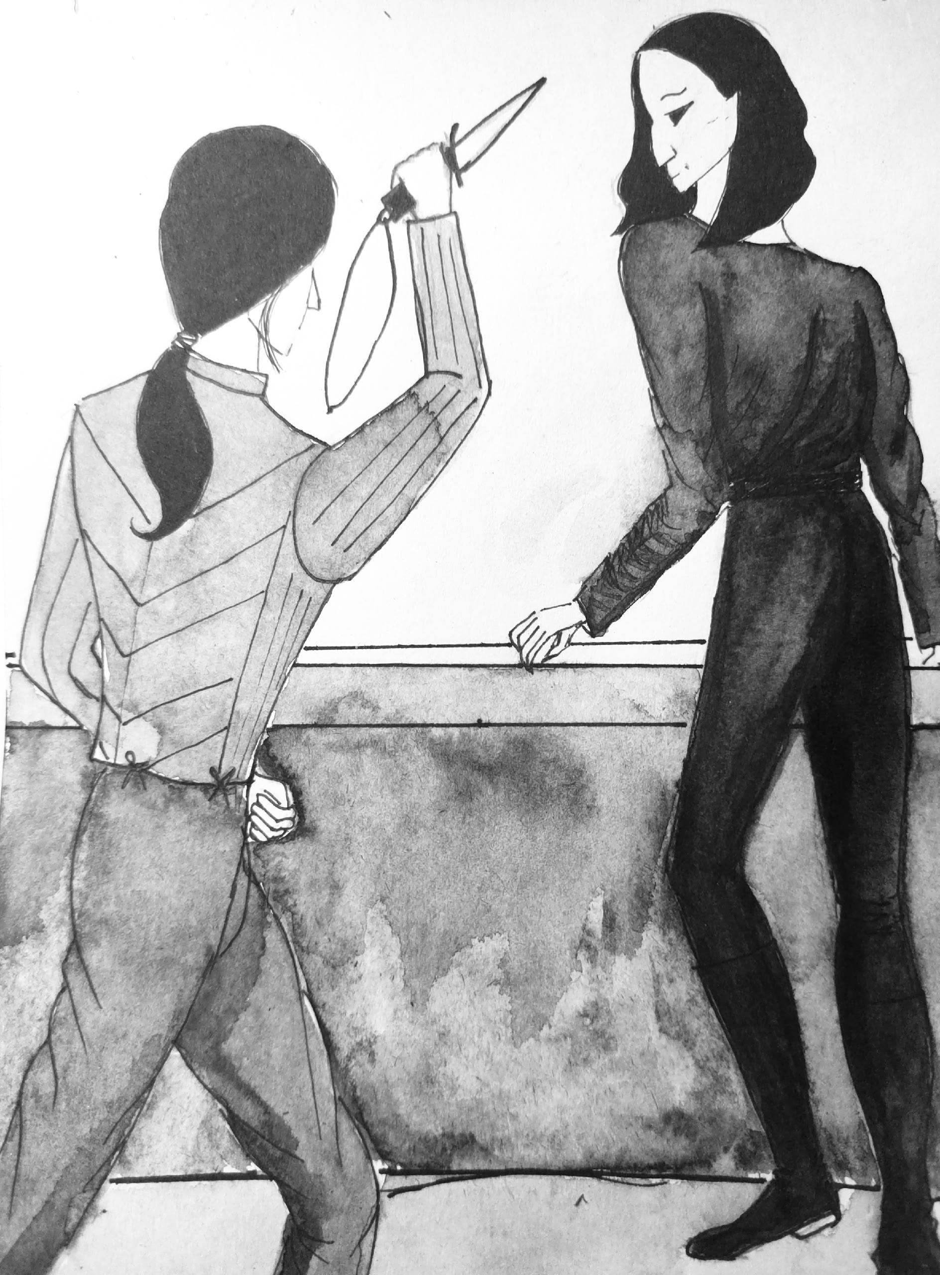 Медленно, постоянно прислушиваясь, он пересек зал - тишина давила, и лишь его собственное прерывистое дыхание нарушало ее, и казалось безумно громким. Он подошел к проему, ведущему на балкон - мужчина был один, стоял, опершись руками на парапет, и казалось, не замечал ничего вокруг. Никки снял цепочку с кинжалом с шеи, перехватил рукоять поудобнее, выдохнул и кинулся на балкон, надеясь поразить стоявшего там с одного удара, перерубив шейную артерию - он не был уверен, что кинжал выдержит хотя бы второй удар.