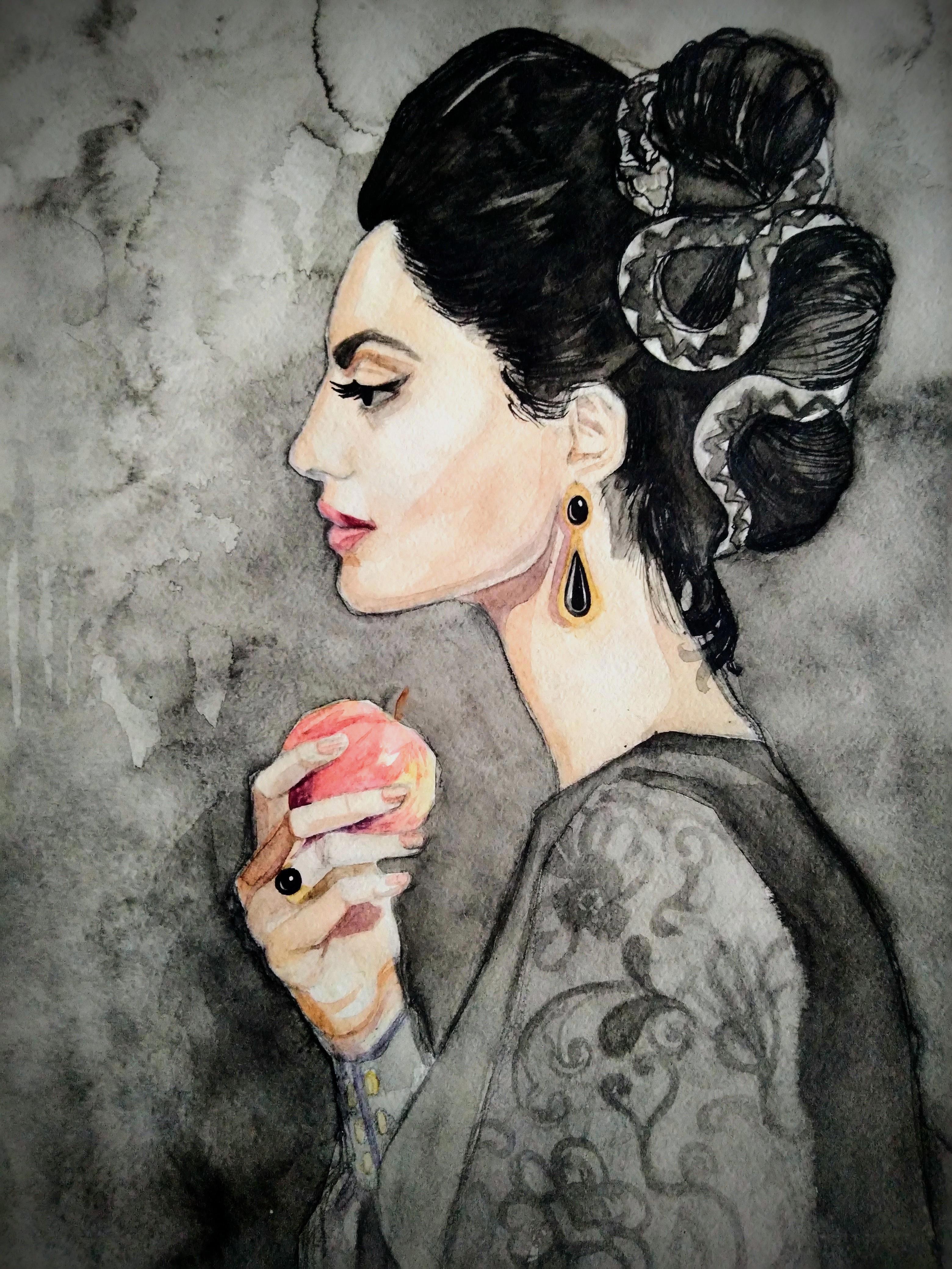 Портрет модели и поэтессы Segovia Amil. Тщательно подбирала детали, чтобы из просто красивого профиля создать викторианский образ. В картину вкладывался косвенный смысл таких тем как искушение, дурные навязчивые мысли и неизбежность предчувствуемых событий.