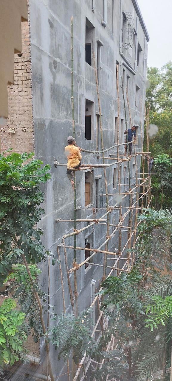 Индийские строители — это молодые парни в простой одежде и, чаще всего, босиком. Работают они на лесах, которые представляют собой обычную бамбуковую жёрдочку. В одной руке ведро цемента, во второй — мастерок. И так они умудряются делать фасад дома на четвёртом этаже, а то и выше.