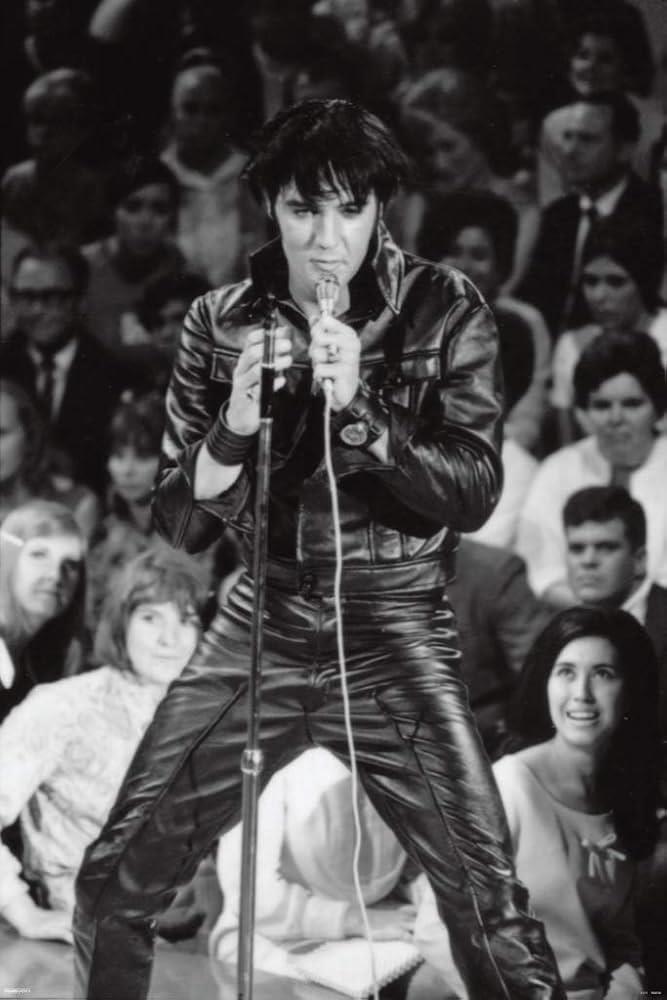 Автор: Владислава АзисМне не о чем писать сегодня касательно моих книг, посему можно просто вновь любоваться шмотом короля рок-н-ролла (интересно, это допустимо отнести к своего рода некрофилии?) из последующих этапов его славы. Тогда уже и The Beatles качали толпу, отчего Элвису Пресли пришлось, так сказать, подвинуться-то на своём троне, хотя делить такой громкий титул не понравилось бы и кому угодно другому. Потому он вернулся на сцену уже не в строгом элегантном смокинге, а в брутальной чёрной коже — и народ ожидаемо офигел (особенно женская половина публики). Дескать, есть ещё порох в пороховницах, рано короля со счетов списывать... Такая она, жизнь в шоу-бизнесе — непрерывная борьба за обожание публики.