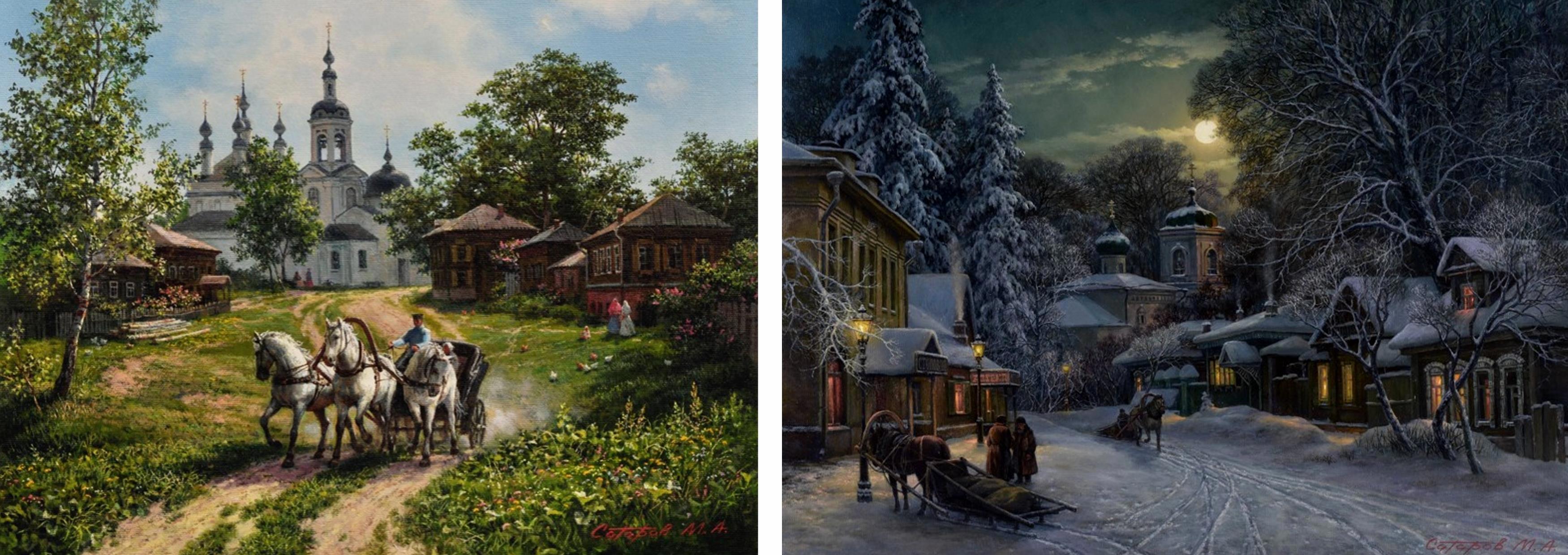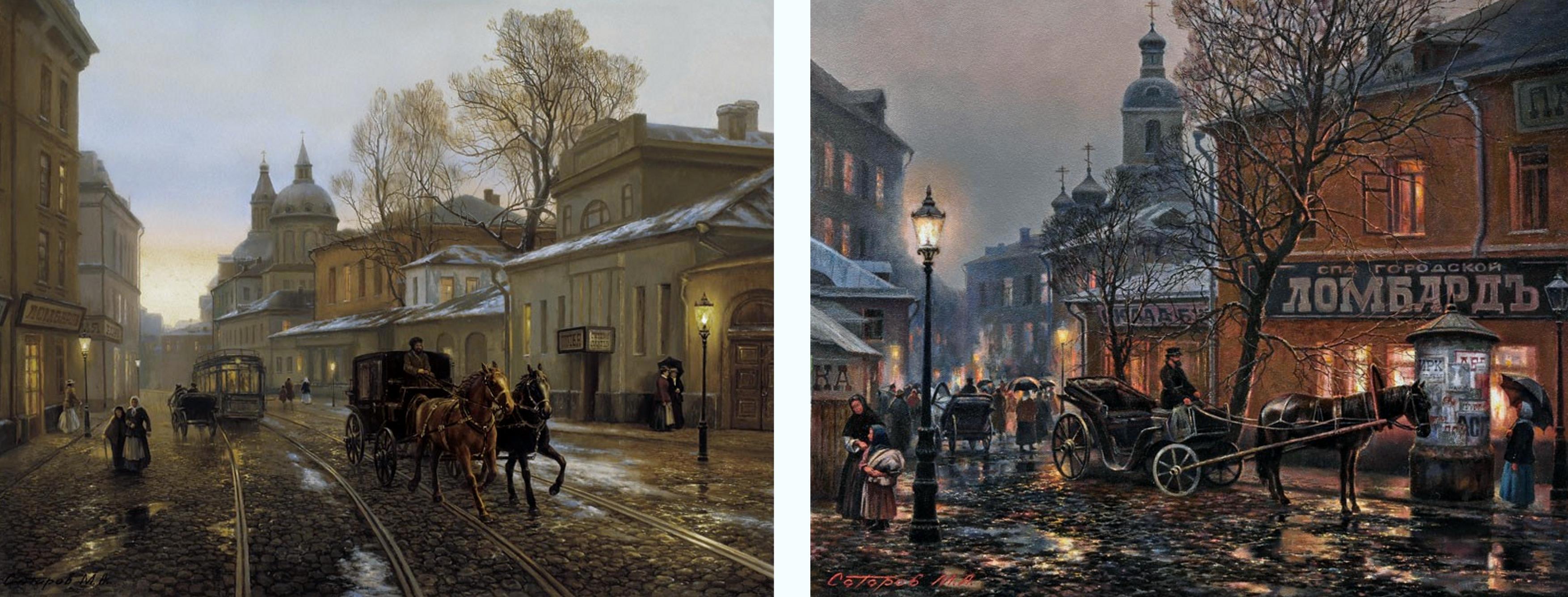 Автор: ЛилияСегодня, друзья, приглашаю вас на прогулку по старой Москве, с художником Михаилом Сатаровым. В каждой его картине есть своё настроение, иногда грустное. И в каждой картине присутствует размеренность и несуетность. Даже бегущие лошади не разрушают этого впечатления... Мне особенно нравятся зимние вечера на его картинах. Мороз, но ты скоро доберёшся до дома, согреешься у печи, выпьешь горячего чаю...