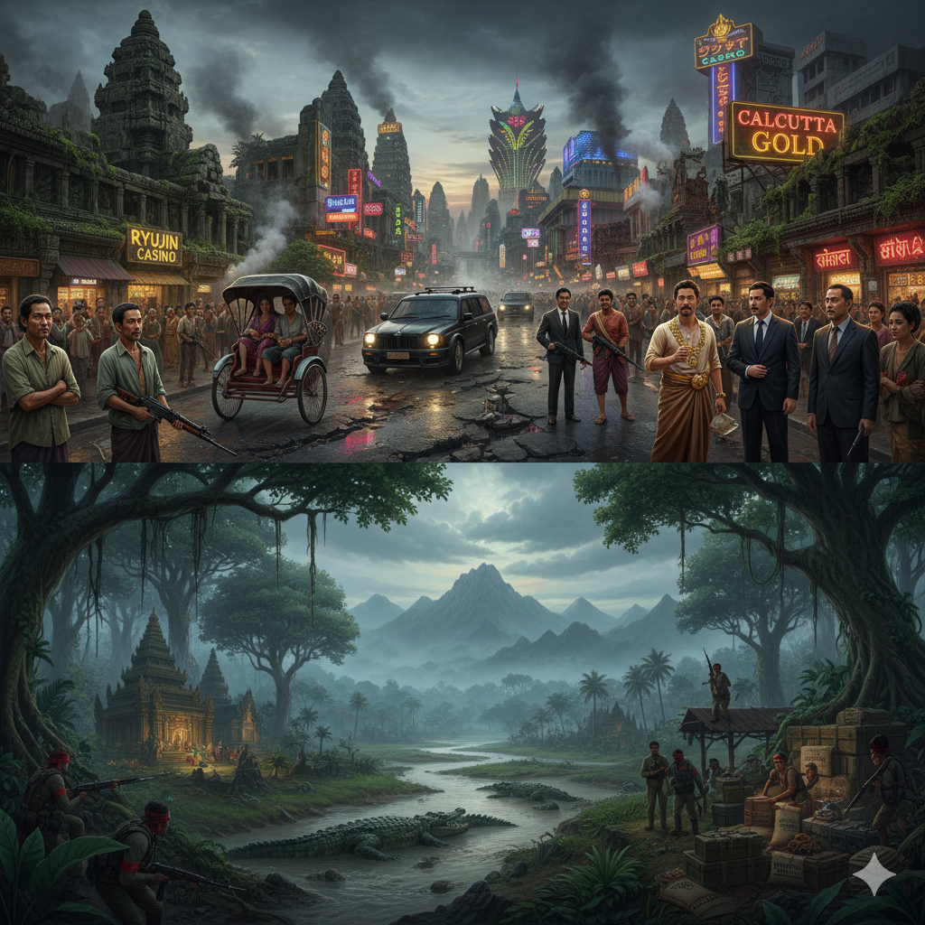 Королевство Исан – это позолоченная клетка, построенная на гнилом фундаменте. Его столица Маха Саракам – город сюрреалистических контрастов. Древние, полуразрушенные кхмерские храмы соседствуют с неоновыми вывесками казино. По разбитым улицам ездят и рикши и бронированные лимузины. Воздух пропитан запахом лотоса, дешевой лапши и опиумного дыма. Местное население живет в бедности, но при этом обладает уникальным, циничным фатализмом. Они научились выживать, обслуживая своих временных хозяев, зная, что завтра власть может смениться. Подлинную элиту составляют королевства не местные аристократы, а главы служб безопасности казино, контрабандисты и владельцы банков- как правило иностранцы.