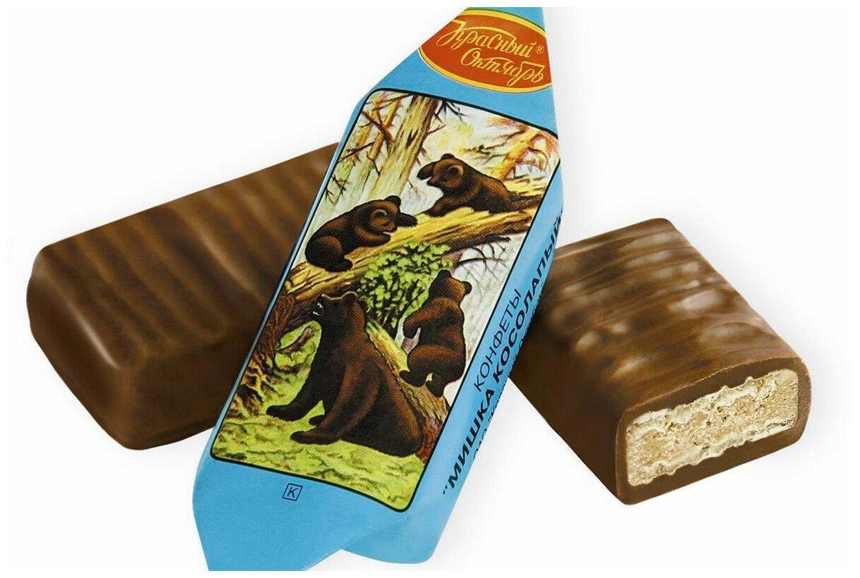 После Великой Отечественной войны Леонид Челноков, ученик Мануила Андреева, восстановил обёртку «Мишки косолапого» для фабрики «Красный Октябрь». В 1958 году конфета получила признание на Всемирной выставке в Брюсселе.