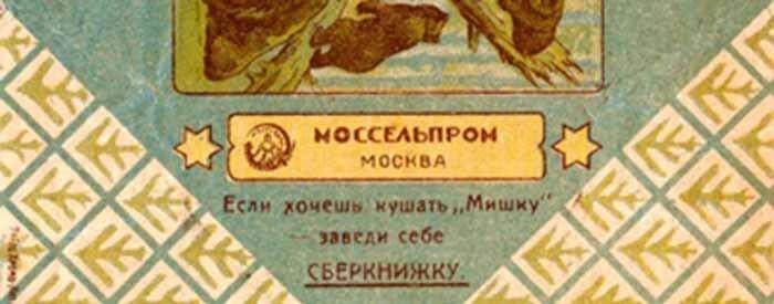 В 20-е годы ХХ века появились экспортный вариант фантика, с надписями на английском языке, и фантик с надписью «Если хочешь кушать „Мишку“, заведи себе Сберкнижку», придуманной Владимиром Маяковским.