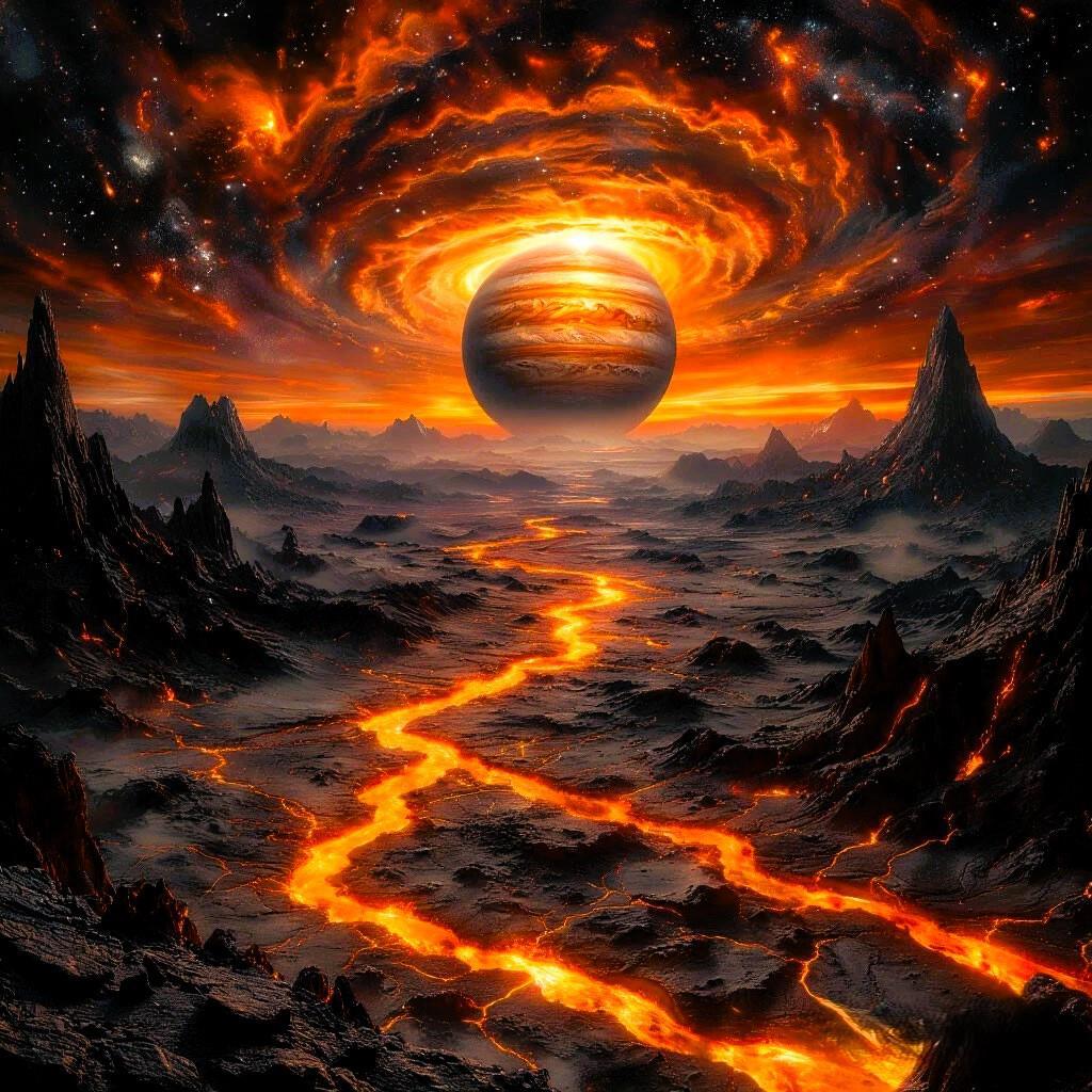 Чем ближе они подлетали к Юпитеру, тем отчетливей можно было разглядеть несусветный хаос, царивший в его ядовитой облачности. Седые и желтоватые экваториальные полосы оказались грандиозными струями густого аммиачного тумана, которые неслись с немыслимой скоростью в противоположных друг от друга направлениях. Меж ними в умопомрачительной кадрили вращались зловещие бледно-сизые тайфуны вселенских масштабов. Но хуже всего было Красное пятно. Этот ужасный вихрь парализовывал внимание и поглощал человеческое сознание пылающими багровыми спиралями своего жуткого смерча, словно глаз фантастического удава. Но Джину всего этого было мало. Он не менял направления движения космического катера, и они продолжали падать всё ближе к разверзшейся пучине алчущего урагана. Звуки счетчика Гейгера, фиксирующего уровень радиации за бортом, из писков учащенной тахикардии переросли в один непрерывный вой.