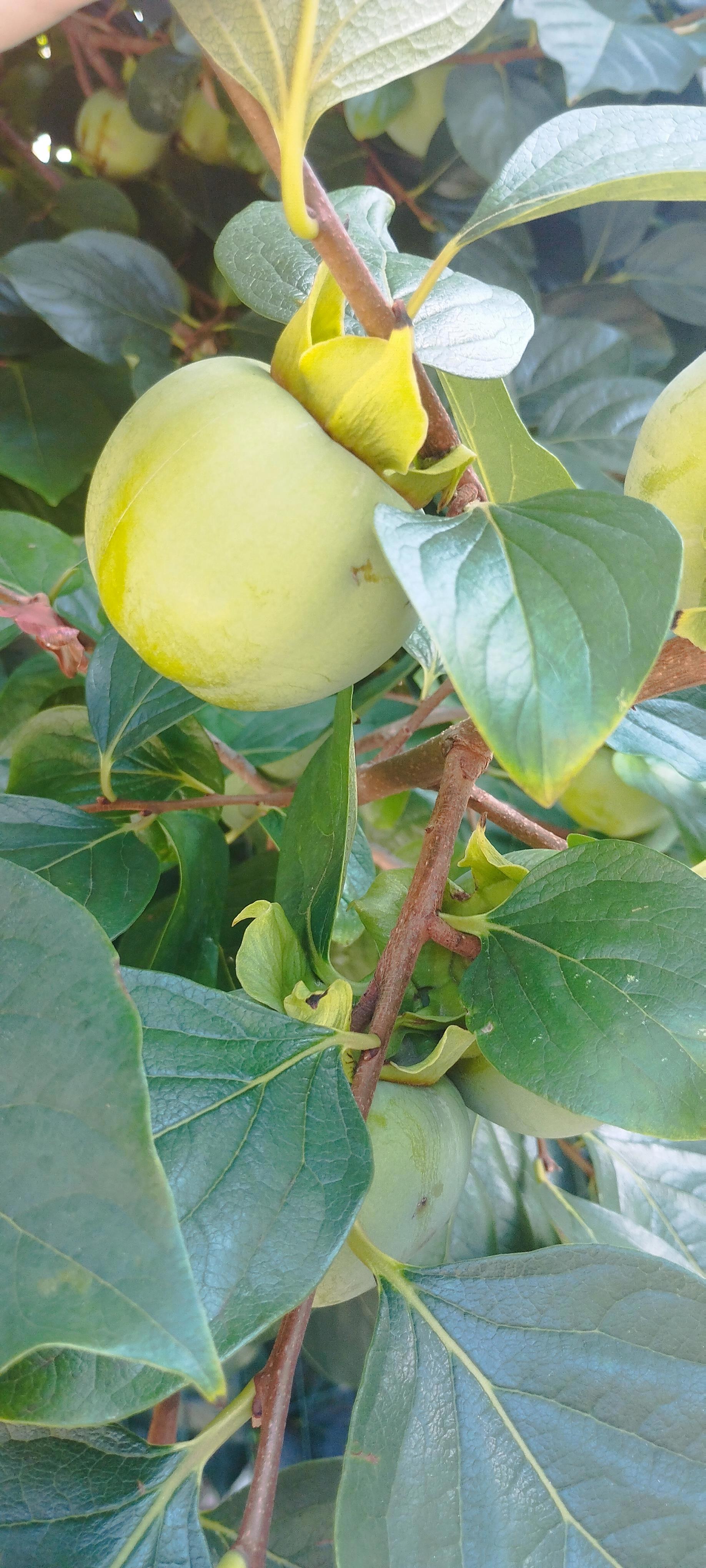 ...фотка растущей хурмы! Зелёной, на ветке, не в тему. Как яблочко, ага?
