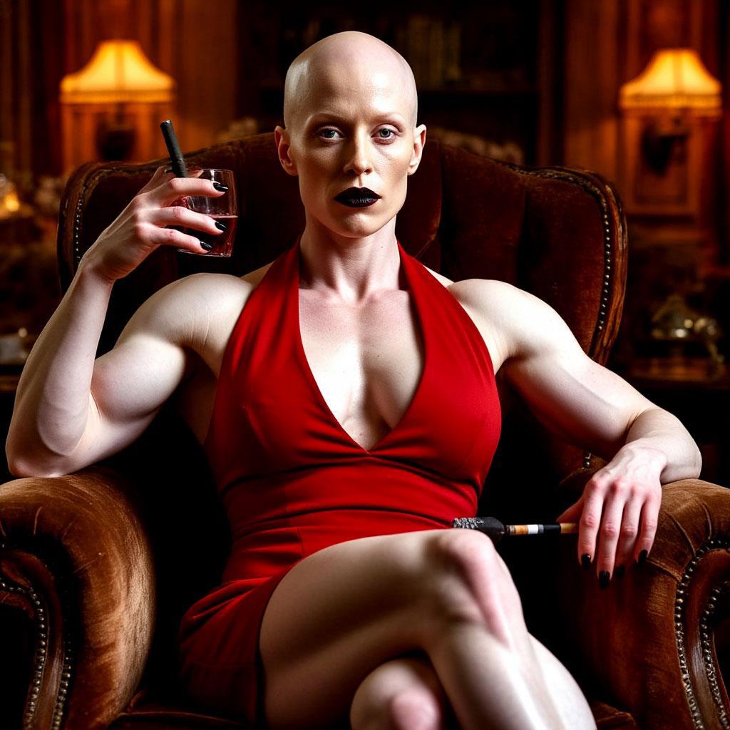 горячими попками. Лысая альбиноска расположилась в викторианском кресле и