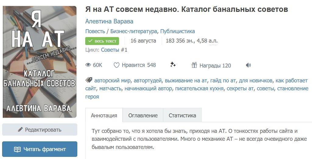 Обновление – это тот момент, когда добавление текста в произведение вынесет книгу в каталог новинок на самый верх и позволит ей попасться на глаза читателям АТ. Вот тут: