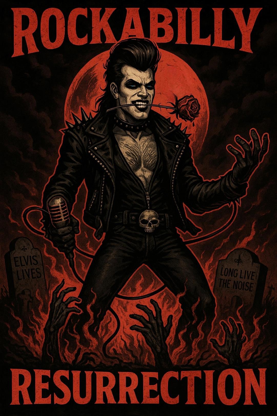 Автор: Владислава АзисДадим зеленоглазой сволочи — точнее, пока голубоглазой, потому что цвет глаз Мистера Рок-н-Ролла является индикатором его эмоционального состояния, а в последней главе он был спокоен, как сытый удав — надышаться перед смертью и продемонстрировать своё успешное воссоединение со старой личностью по имени Рокабилли. ChatGPT создал пару изображений с его новым образом в стиле винтажных музыкальных плакатов.