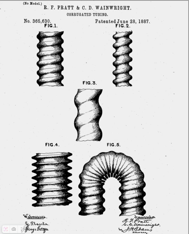 Патент Пратта и Вейнрайта на гофрированные трубы для теплообменников. Технология производства так же была запатентована.