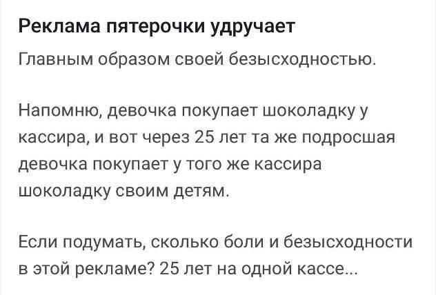 Рис. 11. «Реклама «Пятёрочки» удручает. Главным образом своей безысходностью…». Глас разумного Раба.