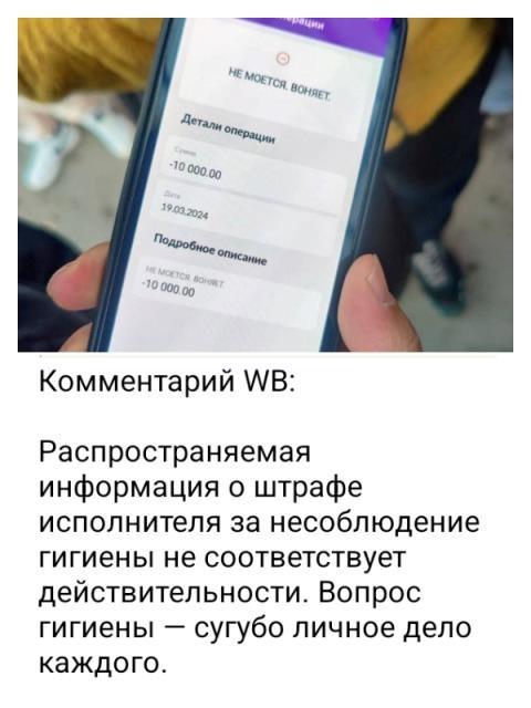 Рис.5. «Не моется. Воняет. Штраф 10 тысяч рублей» (с). Смс в мобильном приложении для WB-Рабов. Автор: Татьяна Владимировна Бакальчук – номинальный основатель WB.